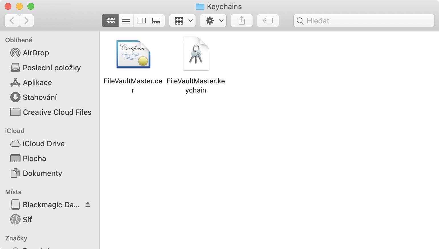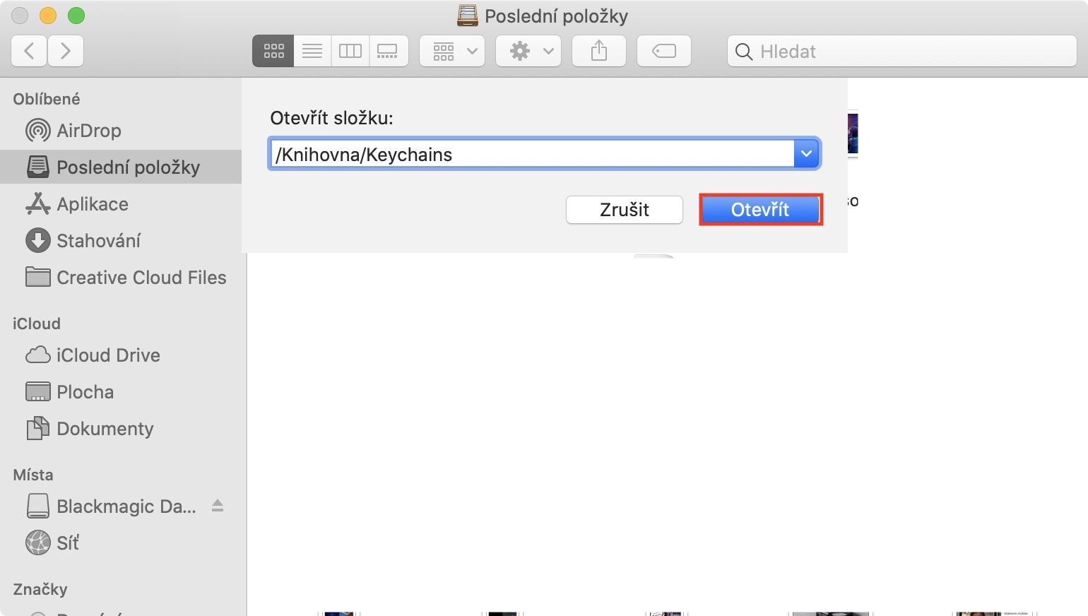 Po zkopírování se přesuňte do okna, které jste otevřeli v minulém kroku, a cestu vložte do jediného textového pole. Nakonec klepněte na tlačítko Otevřít. Zobrazí se složka, ve které by se měly nacházet dva soubory – FileVaultMaster.keychain a FileVaultMaster.cer – oba dva tyto soubory odstraňte, a poté zkuste FileVault znova aktivovat (popřípadě ještě restartuje Mac).