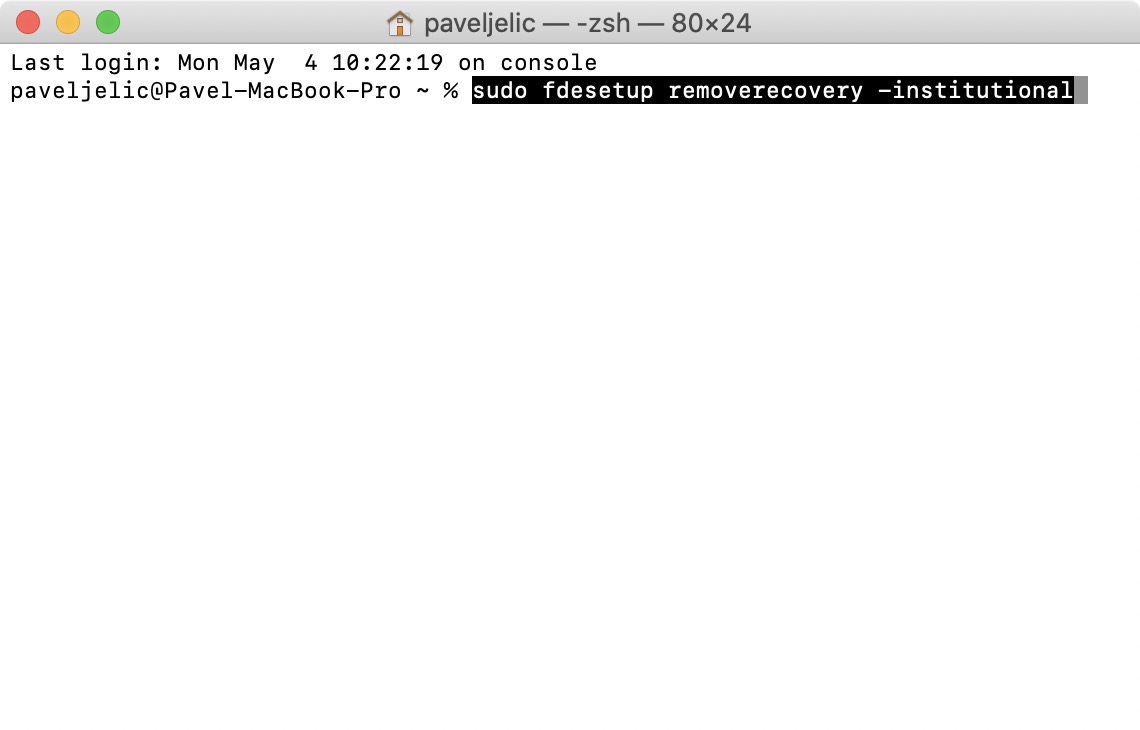 sudo fdesetup removerecovery -institutional