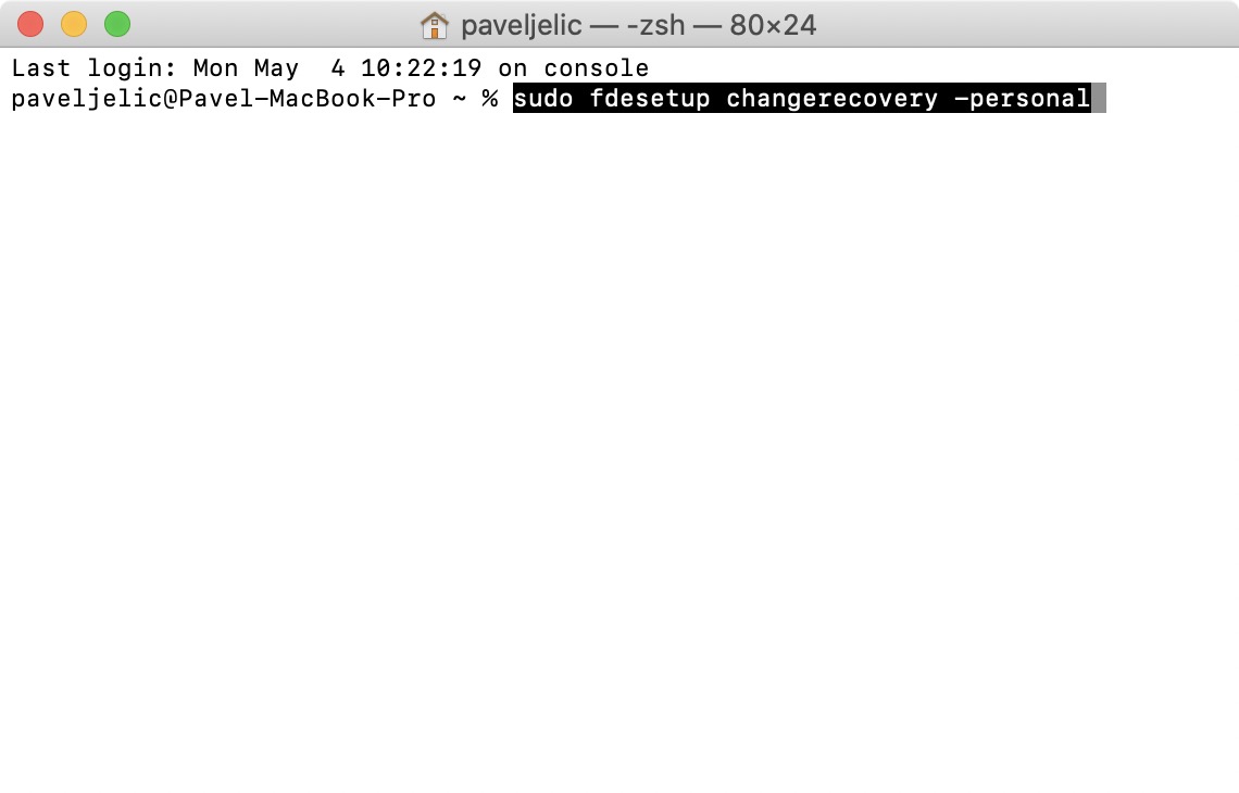 sudo fdesetup changerecovery -personal