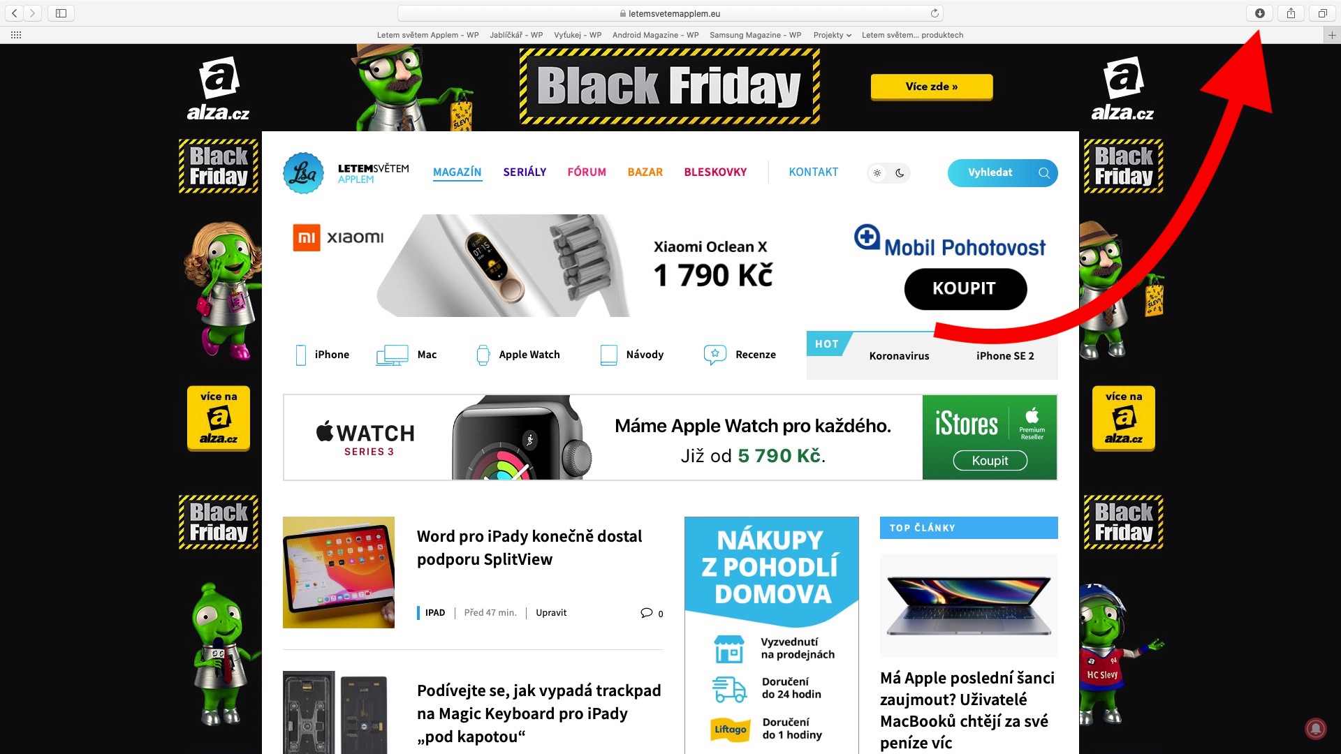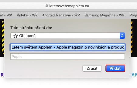 Chcete mít Letem světem Applem po ruce vždy, když zapnete Safari? Pokud ano, tak si nás můžete přidat do oblíbených záložek. Postup je v tomto případě velmi jednoduchý. Chcete-li si LsA přidat do záložek na Macu, tak stačí, abyste se přesunuli na stránky https://www.letemsvetemapplem.eu/. Poté vpravo nahoře klepněte na ikonu sdílení (čtvereček se šipkou) a z menu, které se zobrazí, vyberte možnost Přidat záložku. Poté si v novém okně nastavte, jak a kam se má záložka uložit. Tímto jste si úspěšně přidali záložku LsA na vaše macOS zařízení. Stejně to můžete udělat i s naším bazarem či fórem.