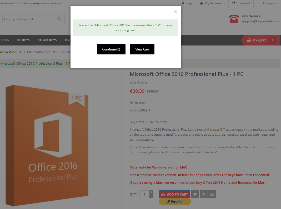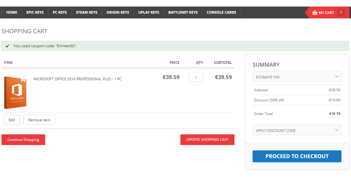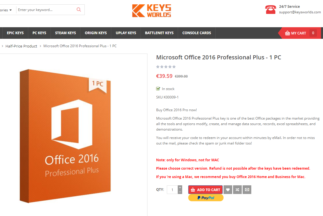 - Office 2016 Professional Plus (1PC) – €19.79