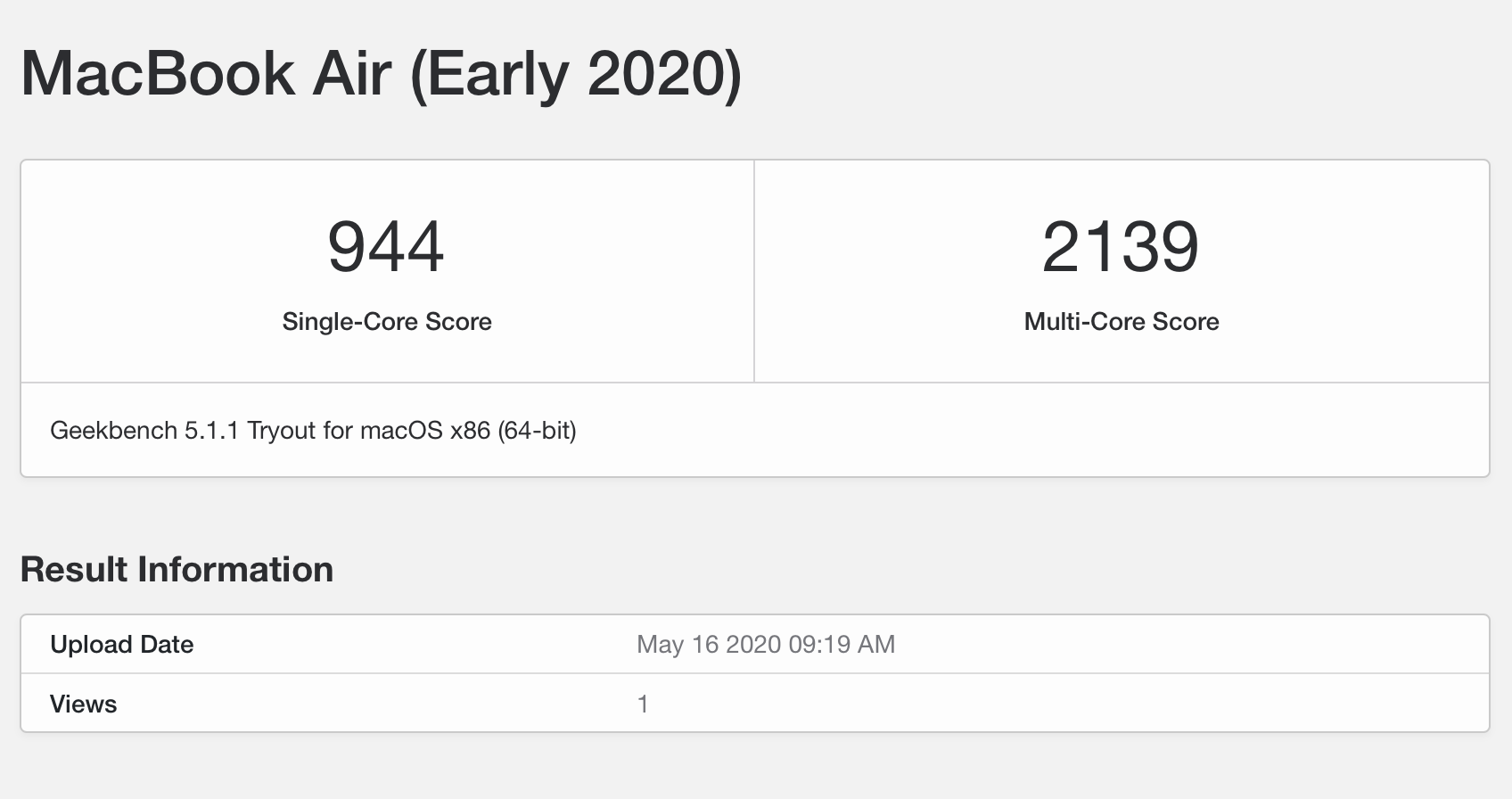 Na problémy nenarazíte ani v případě čtení a zápisu na disk. Podle aplikace BlackMagic zvládá Air zapisovat zhruba 750 MB/s a číst 1460 MB/s, což není sice žádné terno, avšak na práci, pro kterou je určený, to více než dostačuje. Totéž platí i o 8 GB RAM paměti, která je vzhledem k (ne)náročnosti aplikací uživatelů, kteří jsou cílovou skupinou stroje, poměrně velkorysá. Pokud by vás pak zajímal benchmark přes Geekbench 5, MacBook Air (2020) v něm dosáhl v testu jednoho jádra 944 bodů a v testu více jader 2139 bodů.