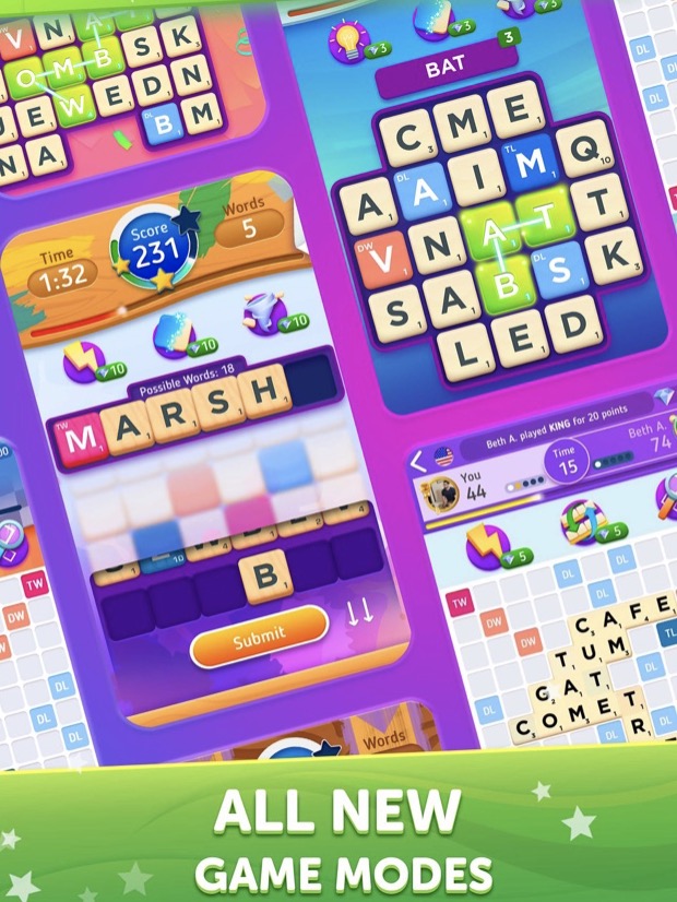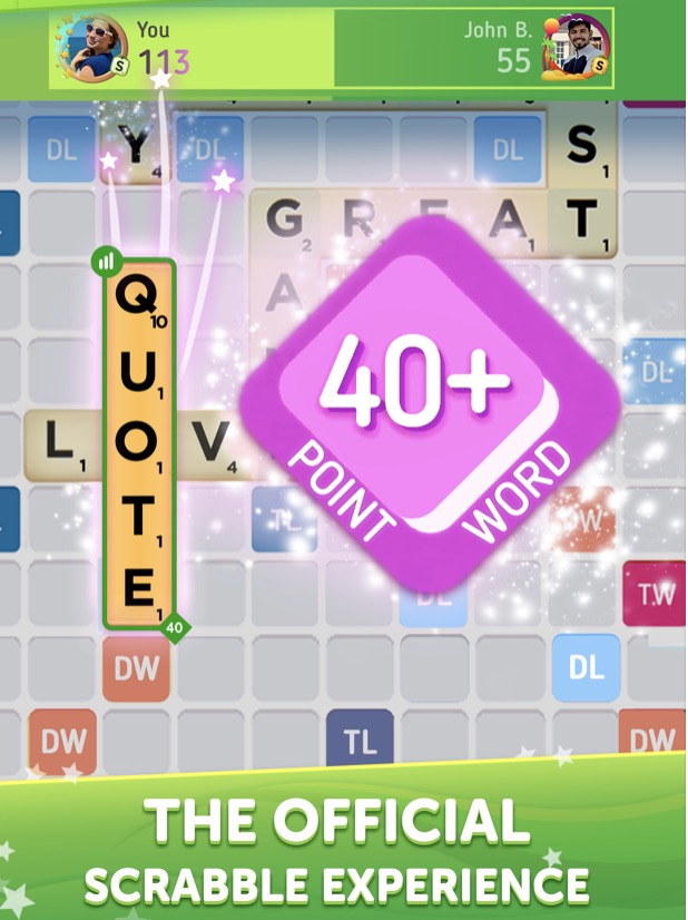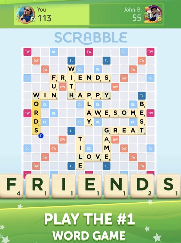 Neméně známou hrou je také Scrabble. I v tomto případě najdete v App Storu nespočet různých her, které konceptu Scrabble využívají. Zatímco v poslední době jsou velmi populární hry „Words with Friends“, tak nesmíme na koncept Scrabblu zapomínat. Hlavním úkolem je v tomto případě na hrací plochu z vašich písmenek vyskládat co nejvíce slov – čím delší slovo, společně s obsahem nezvyklých znaků, tím více bodů dostanete. První zmínky o Scrabblu pochází z roku 1930. Na konci hry vyhrává ten, kdo získal při skládání slov nejvíce bodů.