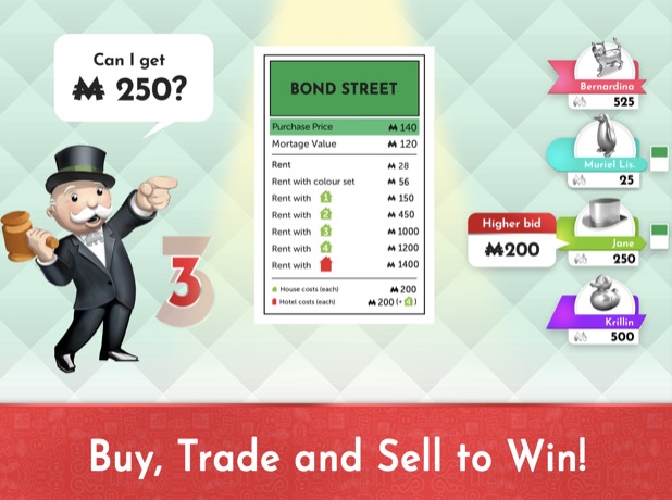 Monopoly patří mezi moderního boha deskových her. Zatímco v minulosti byly tímto bohem (především tedy v Česku) Dostihy a sázky, tak v dnešní době jsou to právě Monopoly. Počátky hry sahají až do roku 1903, kdy byly Monopoly vytvořeny jako ukázka toho, jak bude vypadat ekonomika, když se na trhu objeví právě monopoly. Vaším cílem v této hře je, abyste vaše protivníky nějakým způsobem donutili vyhlásit bankrot. Tato populární hra byla kompletně převedena na iOS, abyste ji mohli mít vždy u sebe, a abyste si ji mohli s přáteli kdykoliv zahrát. Celkově jsou ve hře k dispozici tři různé obtížnosti, pravidla poté mohou být různě přizpůsobena. Abyste mohli hrát hru s přáteli, je nutné, aby ji měli nainstalovanou.