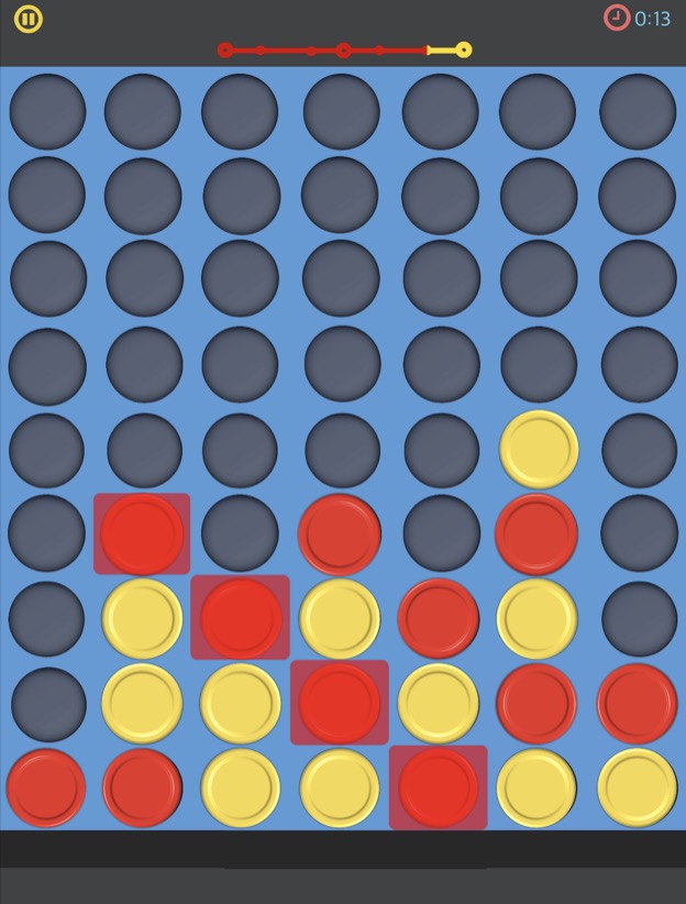 Ve hře Connect 4 se ocitnete mezi sedmi sloupci a šesti řádky, kdy je vaším úkolem spojit celkem čtyři kuličky – a to buď vertikálně, horizontálně či diagonálně. I když se to může zdát jednoduché, tak věřte, že není. Celý tento koncept je velmi komplexní, čemuž napovídá i fakt, že existuje přes 4 miliardy způsobů, jak můžete hrací plochu zaplnit, ale také 2 miliardy způsobů, jak lze čtyři tečky spojit. Tato hra vás dokáže zabavit na opravdu dlouhou dobu. Neexistuje žádná „oficiální“ a patentovaná verze této hry – na App Storu jich můžete najít hned několik. Nejlepší z nich je již zmíněná Connect 4, která kromě singleplayeru disponuje také multiplayerem.