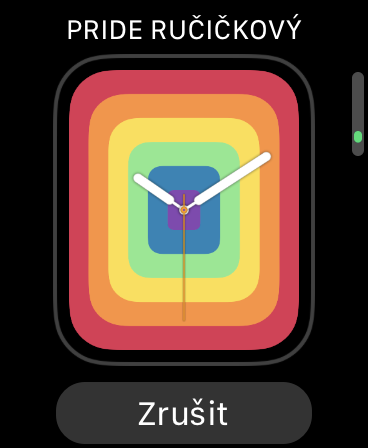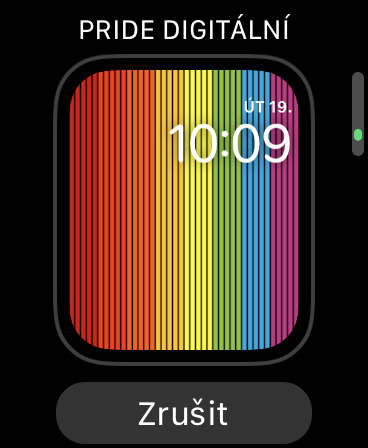 Podobně bizarní situace nicméně panuje i přímo na Apple Watch, přes které lze samozřejmě nové ciferníky v rozhraní pro úpravu ciferníků dostat také. Když jsme však toto rozhraní otevřeli (to učiníte přitlačením na jakýkoliv ciferník a následným scrollováním doprava až k možnosti “Nový”), zjistili jsme, že se nám v nabídce hodinek zobrazuje jen jeden nový LGBT ciferník místo nejméně pěti kousků. Například klasické svislé pruhy zůstaly v našem případě i po updatu na watchOS 6.2.5 v designu LGBT ciferníku z loňského roku.