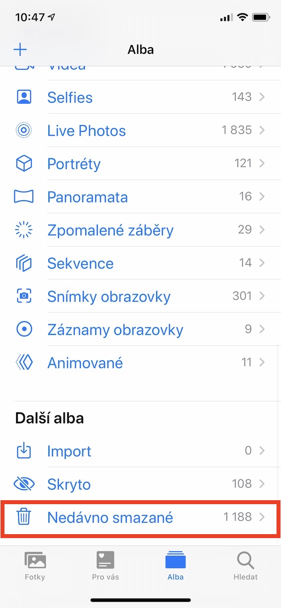 Tímto se všechny fotky a videa přesunou do sekce Nedávno smazané, kterou najdete v aplikaci Fotky. Zde stačí do této sekce přejít a klepnout vpravo nahoře na Vybrat, a poté vlevo dole na Smazat vše. Tuto akci poté stačí potvrdit. Pokud jste se tímto způsobem rozhodli pro smazání veškerých fotografií, tak berte na vědomí, že se jedná o vcelku složitý proces. Pokud se vám tedy odstranění všech fotek neprojeví a i nadále je v Nedávno smazaných uvidíte, tak restartujte zařízení a popřípadě několik hodin počkejte. Ke smazání by mělo postupně dojít automaticky.