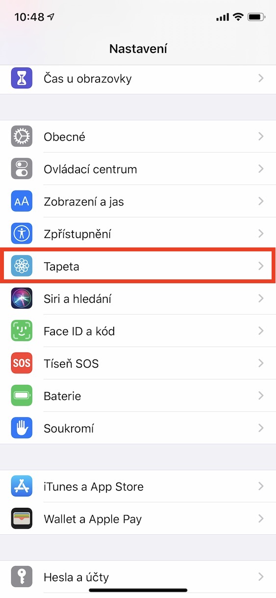 • V menu sjeďte o něco níže, dokud nenarazíte na kolonku Tapeta, kterou rozklikněte