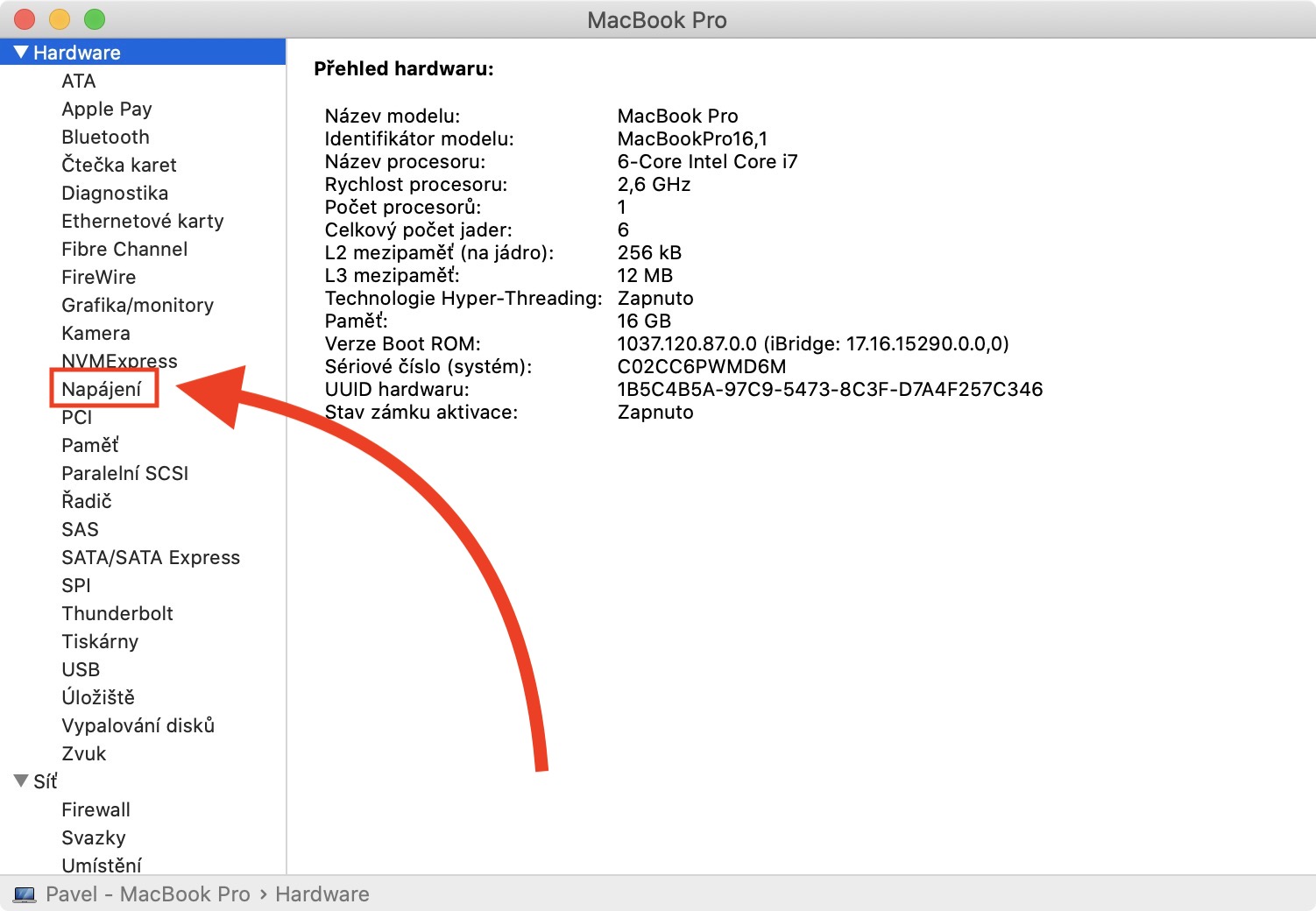 - Zde stačí najít položku Počet cyklů, jenž se nachází v kategorii Informace o baterii pod kolonkou Informace o stavu.