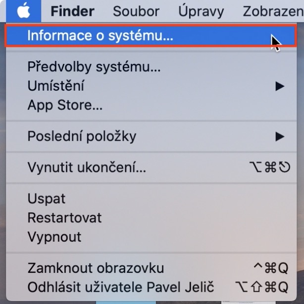 - S podrženou klávesou Option klepněte kurzorem na první možnost Informace o systému…