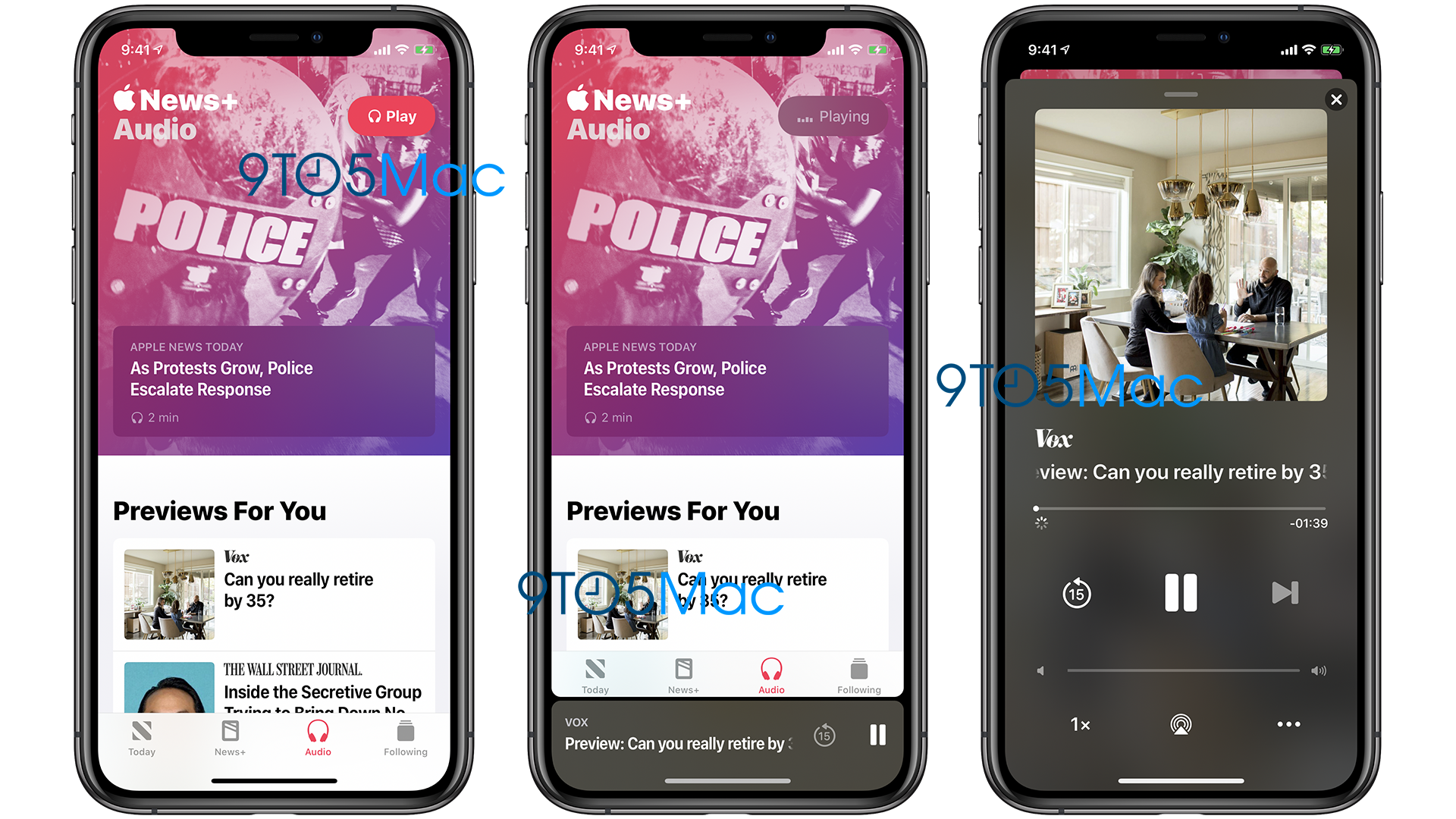 Jakmile si určitou zprávu či příběh uživatel vybere, tak se zobrazí klasický přehrávač médií, jenž je podobný tomu z aplikace Podcasty. Kromě tlačítka přehrát/pozastavit je k dispozici také možnost pro přetočení 15 sekund nazpět, či pro přeskočení celé skladby, respektive zprávy či příběhu. Zajímavou funkcí je také možnost pro nastavení rychlosti přehrávání – na své si tedy přijde opravdu každý. Kolonka Audio se v menu zobrazí i těm uživatelům, kteří si News+ nepředplácí. Předplatitelé však budou mít k dispozici prémiový obsah. Pokud navíc patříte mezi „neplatiče“, získáte přístup jen k ukázkám posledních zpráv a nikoliv k celým verzím. Pravděpodobná je také integrace funkce pro Siri, tudíž si uživatelé budou moci pomocí příkazu přehrát nejnovější zprávy na iPhonu, iPadu, HomePodu a dalších jablečných zařízeních.