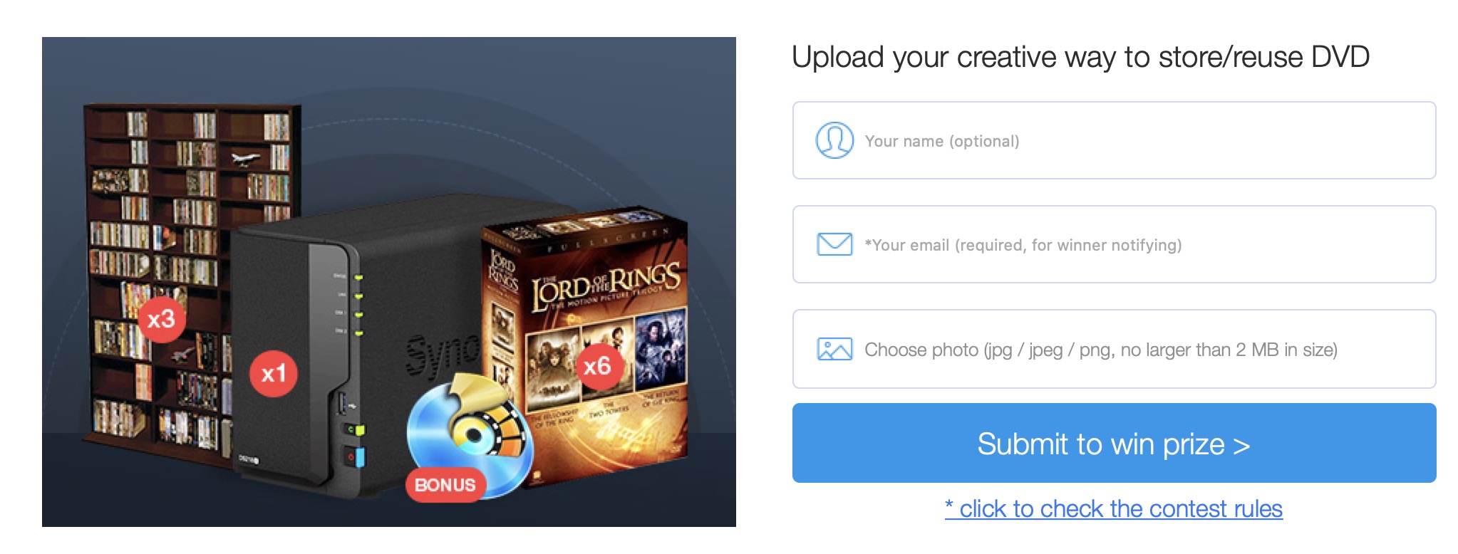 WinX DVD Ripper Pro patří mezi profesionální programy, a tak není divu, že se jedná o program placený. Čas od času však vývojáři tohoto programu přichystají soutěž či akci, ve které lze WinX DVD Ripper získat zdarma, anebo se zajímavou slevou. A tento čas nadešel právě teď. Pokud se zapojíte do poslední soutěže na stránkách DVD Movie Collection Center, tak můžete kromě kopie programu WinX DVD Ripper Pro zdarma získat NAS stanici od Synology v hodnotě 299 dolarů, DVD poličku v hodnotě 140 dolarů, anebo DVD kolekci Pána prstenů v hodnotě 25 dolarů. Vše, co musíte pro zapojení se do soutěže udělat, je přejít na stránky akce, zadat své jméno, e-mailovou adresu a nahrát fotografii vaší sbírky starých DVD – například poličku s DVD disky, krabici plnou disků, apod. Kopie programu WinX DVD Ripper Pro vám poté přijde obratem na zadanou e-mailovou adresu.