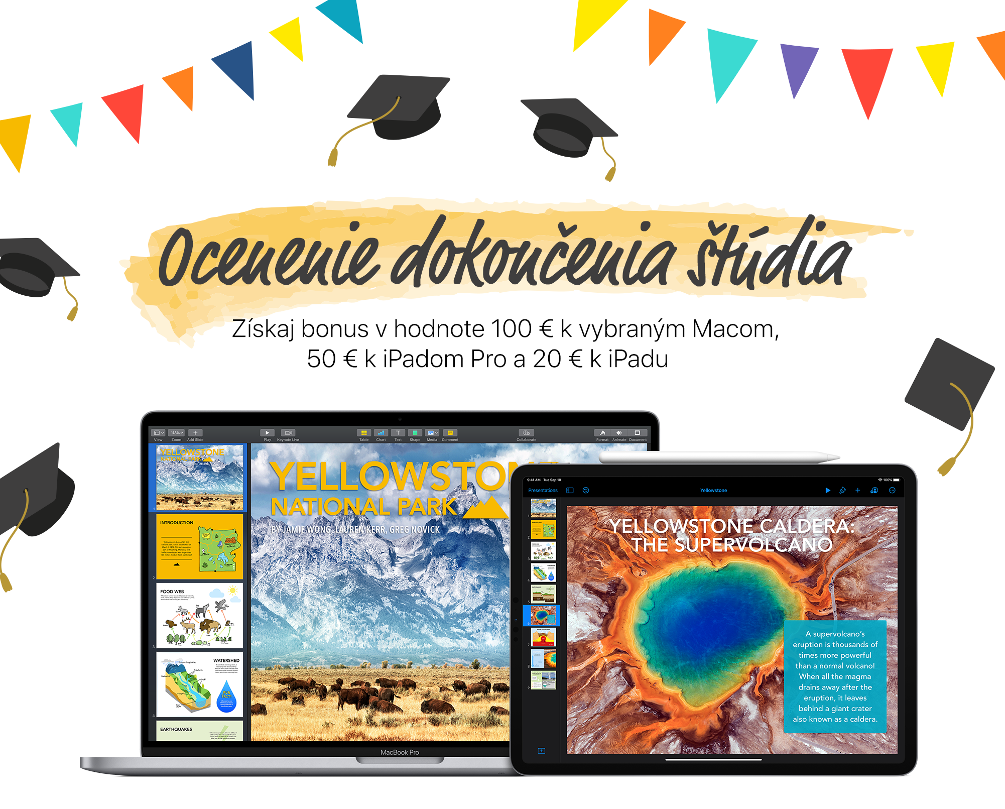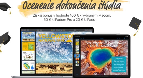 Pokud jste letošní školní rok zakončili ve velkém stylu a cítíte se na velkou odměnu, pořiďte si u iStores.sk Mac, jelikož k němu můžete získat bonus v hodnotě 100 euro (pokud tedy sáhnete po vybraném modelu). Další bonusy jsou pak možné získat k iPadům – konkrétně k řadě Pro je to 50 euro a ke zbytku pak 20 euro. Rozhodně se tedy nejedná o zanedbatelné částky, které byste dennodenně našli na chodníku.