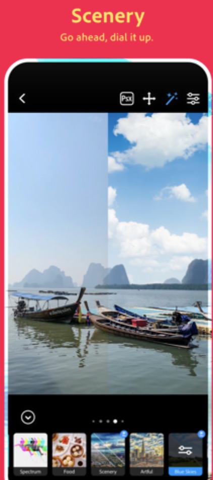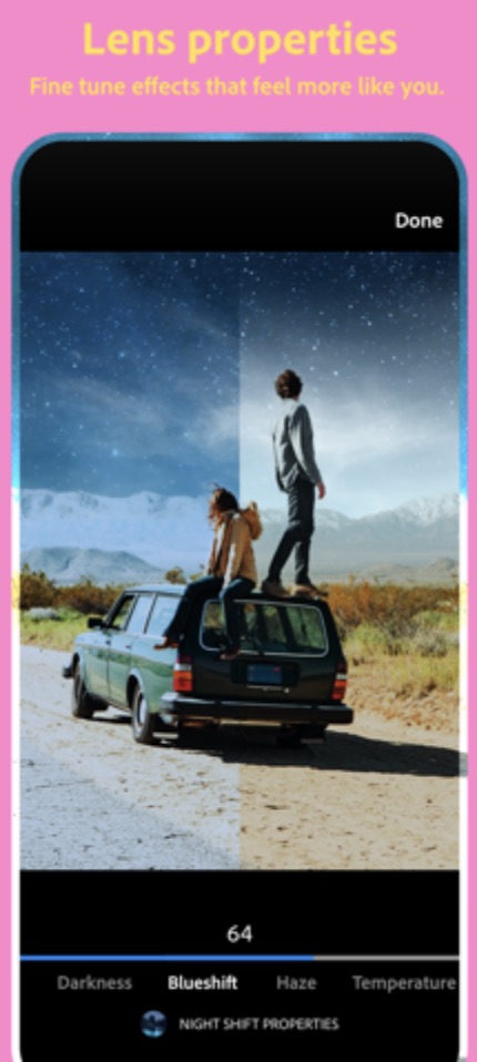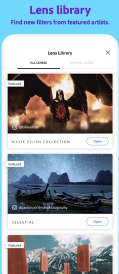 Adobe aplikaci Photoshop Camera označuje jakožto „fotoaparát vašich snů“. Co si budeme nalhávat, v App Storu jsou samozřejmě k dispozici lepší, respektive profesionálnější aplikace, jenž dokáží nativní Fotoaparát nahradit. Photoshop Camera však cílí spíše na amatérské uživatele, kteří rádi využívají filtry (v Photoshop Camera jich je k dispozici přes 80). Všechny tyto filtry lze aplikovat buď při focení, anebo samozřejmě až po něm. Filtry jsou rozděleny do různých kolekcí, které pochází od různých celebrit, influencerů, apod. Kolekce filtrů se má samozřejmě postupně zvětšovat, už teď má Adobe v plánu uzavřít partnerství s Billie Eilish, která do aplikace dodá taktéž své vlastní filtry. Skvělou možností je poté možnost okamžitého importu do aplikace Photoshop.