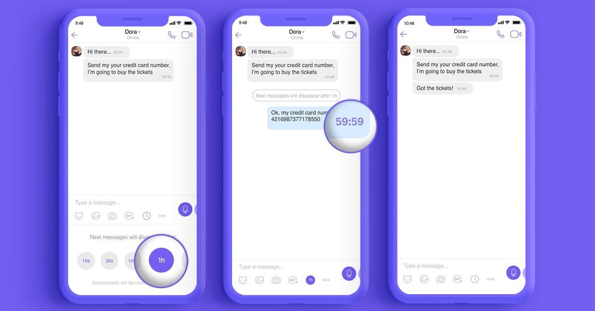 Jednou z nových funkcí aplikace jsou mizící zprávy. Můžete napsat zprávu a nastavit si čas, po jaké sama zmizí. Odpočet času začíná v momentě, kdy je zpráva přečtena. Tato funkce byla dříve k dispozici jen v tajným konverzacích, nyní je ale i v běžných chatech.