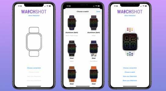 Jakmile si tělo Apple Watch vyberete, tak Watchshot automaticky provede „sloučení“, tedy vezme snímek obrazovky a do těla hodinek jej vloží. Poté už si uživatel pouze zvolí, zdali chce vytvořený snímek uložit do galerie v aplikaci Fotky, anebo zdali jej chce pouze sdílet v rámci aplikací jako obrázek. Watchshot je naprosto skvělou aplikací, pokud patříte mezi vývojáře a potřebujete vytvořit zdarma obrázky z vaší aplikace na Apple Watch, anebo pokud potřebujete ilustraci ke článkům, apod. Jediným neduhem této aplikace je fakt, že nelze snímky obrazovky uložit s průhledným pozadím, což může být pro nějaké uživatele velký problém. Dost možná se však této možnosti dočkáme v příští aktualizaci. Na závěr jen zmíním, že pro nainstalovaní aplikace musí váš iPhone či iPad běžet na iOS či iPadOS 13.