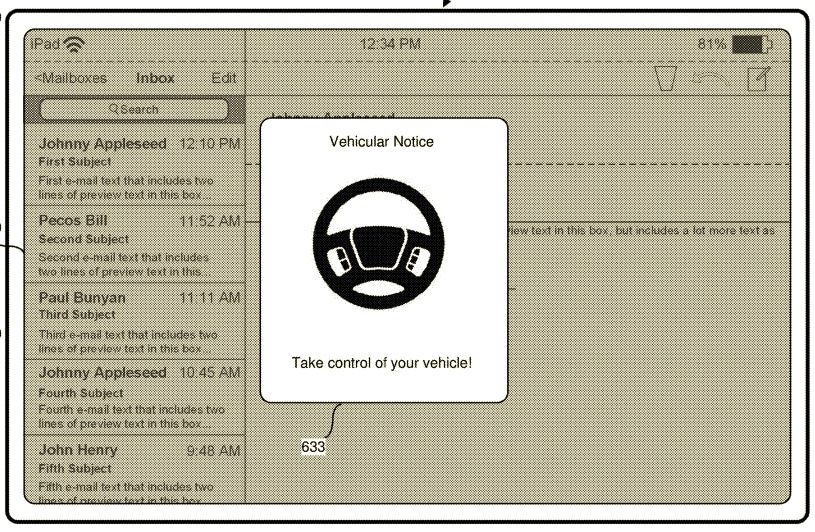 V tomto případě by na scénu mohly přijít notifikace a upozornění, které by se nezobrazovaly pouze na palubním displeji auta, kde jsou lehce přehlédnutelné, zejména tedy pokud uživatel věnuje svou pozornost i jinému zařízení. Místo toho by byly spárovány s jablečným telefonem či tabletem, kde by mohl řidič nerušeně pracovat nebo si užívat zábavu a v případně nutnosti by ho systém automaticky upozornil na nutnost převzít kontrolu nad řízením. Nebude se pochopitelně jednat o sáhodlouhé texty nebo nějaká alarmující oznámení, místo toho se zobrazí například obrázek semaforu s tím, že se auto blíží ke křižovatce. Zkrátka by tak systém zaregistroval náhlé okolnosti, kvůli nimž by auto muselo zastavit, a ty by následně předložil uživateli na displej. Rozhodně se jedná o krok vstříc bezpečnějšímu autopilotovi a něco, s čím například Tesla zatím nepřišla.