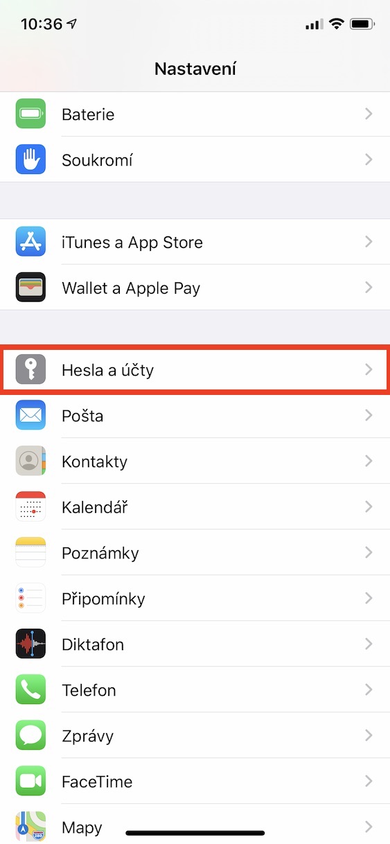 - Zde poté přejděte do sekce Hesla webů a aplikací a pomocí Touch ID či Face ID se autorizujte.