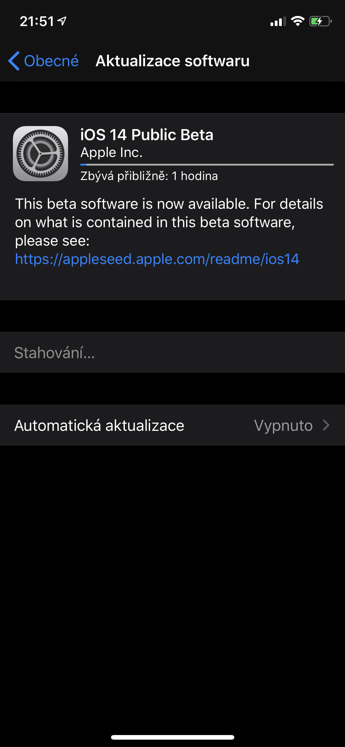 Poměrně zajímavé je, že se beta v iPhonu tváří jako beta veřejná a nikoliv vývojářská, což znamená, že by měla být jednak poměrně stabilní a jednak vám nehrozí žádné riziko ve formě blokace ze strany Applu, kterému se vystavujete při neoprávněném použití vývojářských účtů, což je při beta testování zcela běžná rutina. Na druhou stranu, samozřejmě nelze se se 100% jistotou říci, že telefon, ve kterém software poběží, bude zcela funkční, respektive že nebude trpět softwarovými chybami. Pokud máte však odvahu, směle do instalace. I my již stahujeme jako o závod.