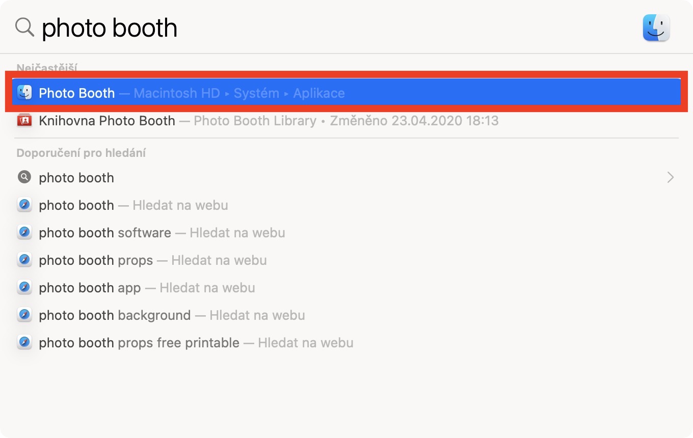 - Jakmile hovor ukončíte, tak pomocí Spotlightu, anebo ve složce Aplikace, najděte aplikaci s názvem Photo Booth, kterou spusťte.