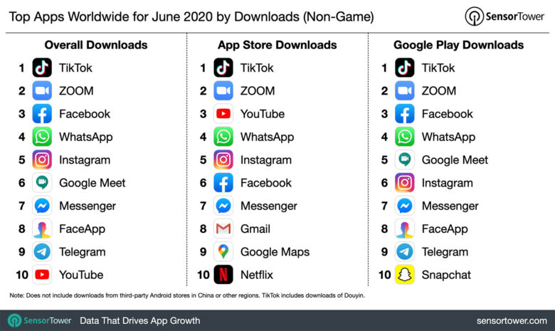 O to více nicméně na paty společnosti ByteDance šlapou regulační orgány a státníci. Řada z nich dokonce považuje zákaz používání ve Spojených státech, především pak kvůli sbírání osobních dat uživatelů, jak má Čína ve zvyku. Na adresu TikToku se nelichotivě vyjádřil i Mike Pompeo, ministr zahraničních věcí, podle nějž se jedná o ohrožení bezpečnosti a suverenity země. Tak či onak, není to pouze tento mediální gigant, který si užil exponenciální růst. Stále oblíbenou aplikací je i videokonferenční platforma Zoom, kterou si stáhlo 71.2 milionů uživatelů, což je 34krát více než v červnu loňského roku. Za největší růst opět mohla především Indie, zatímco Spojené státy jsou na druhé příčce v žebříčku. Na seznam nejstahovanějších aplikací se můžete podívat výše.