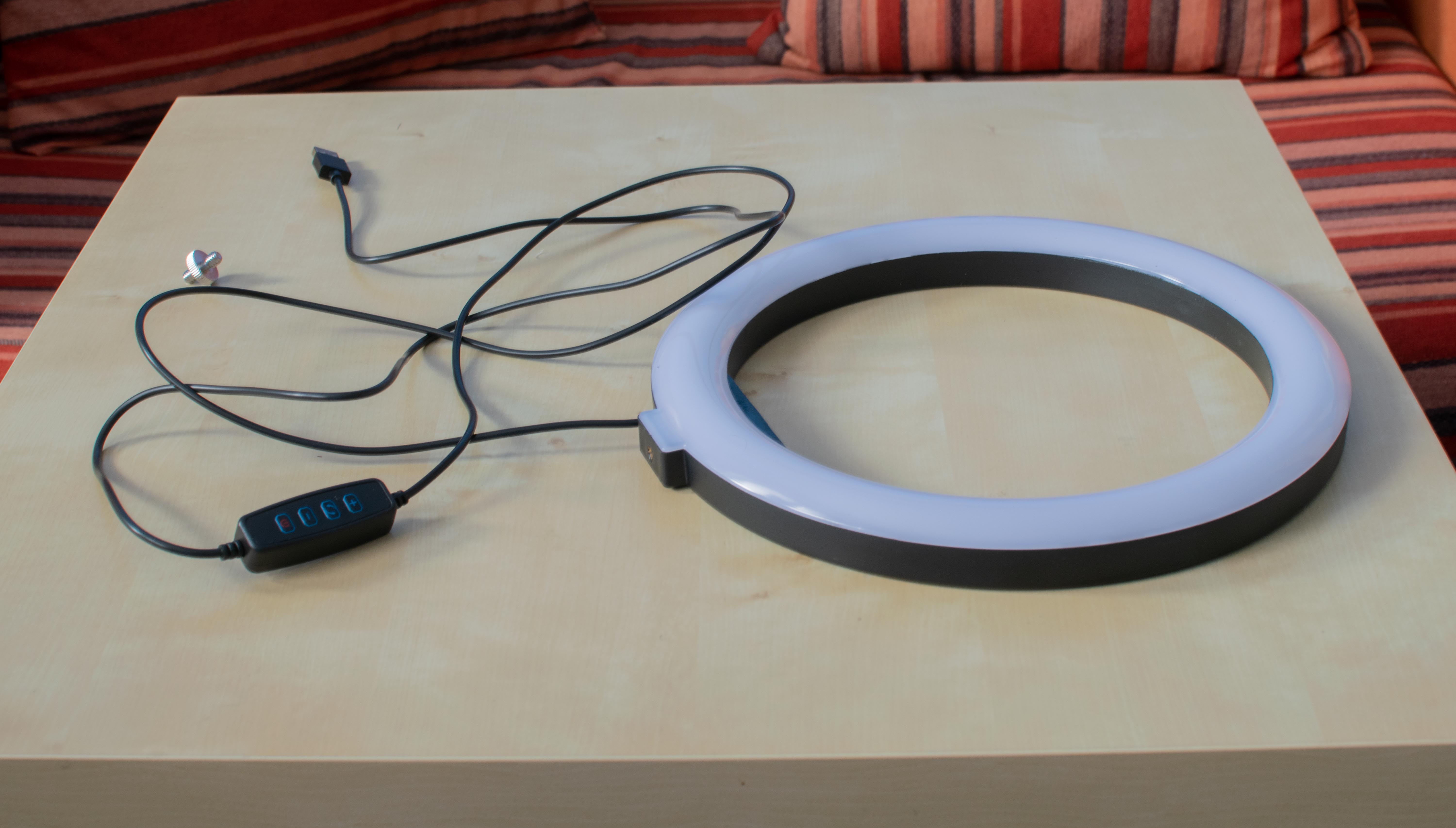 Poslední nedílnou částí balíčku je kruhové LED světlo, které má za úkol jediné – dodat videotvůrci co možná nejkvalitnější osvětlení. Světlo má průměr 10”, takže je poměrně velké, avšak na druhou stranu ne až zas tak moc, aby se s ním špatně manipulovalo například při transportu. Co se týče technologie, kterou pro svícení využívá, jedná se o klasické LED.