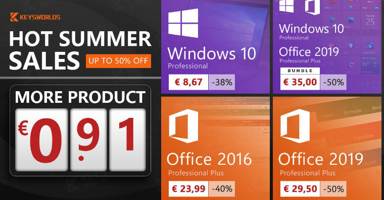 Letošní letní slevy toho přinesly skutečně mnoho. Nyní totiž máte možnost získat 50% paušální slevu na licence pro kancelářský balíček Microsoft Office 2019, nebo můžete sáhnout po výhodnější variantě, kdy získáte rovnou zmiňovaný balíček spolu s operačním systémem Windows 10. Jednoduše vám v košíku postačí zadat kód KWS50, čímž se vám výsledná částka automaticky sníží o polovinu.
