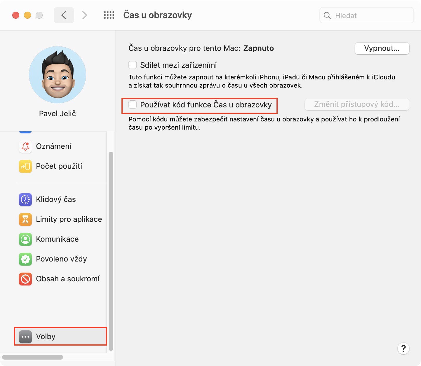 Aby dítě nemohlo tohle omezení jednoduše stisknutím tlačítka deaktivovat, tak je nutné, abyste Čas u obrazovky uzamknuli. Toho docílíte tak, že v levém menu klepnete na poslední kolonku Volby, kde zaškrtnete možnost Používat kód funkce Čas u obrazovky. Pak už si stačí jednoduše projít klasickým postupem nastavení hesla a je hotovo. Dítě se nyní nedostane na jiné, než vybrané webové stránky.