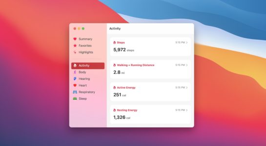 Apple prozatím nejspíše nemá v plánu aplikaci Zdraví do macOS umístit, byť by to s pomocí jeho Projectu Catalyst nebylo nic složitého – stačí se podívat například na aplikaci Zprávy či Mapy v macOS 11 Big Sur, které byly portovány právě pomocí něj. Koncept aplikace Zdraví v macOS se pokusil vytvořit Jordan Singer, který se v minulosti zasloužil například o zpracování konceptu operačního systému pro Apple Glasses. Koncept aplikace Zdraví je zpracován do prostředí operačního systému macOS 11 Big Sur – nechybí tedy například zaoblené rohy a všeobecně se aplikace velmi podobá těm z iOS či iPadOS 14. V levém menu aplikace by podle konceptu mělo být možné se jednoduše přepínat mezi různými sekcemi aplikace. K dispozici je zde například přehled, níže poté záznamy o jednotlivých položkách zdraví, tedy aktivita, sluch, srdce a další.