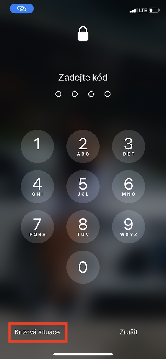 - Na uzamčené obrazovce klepněte na Krizová situace.