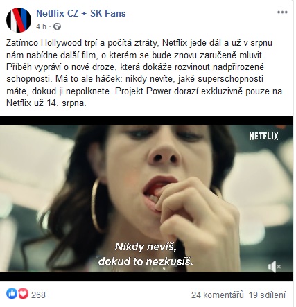 Vzhledem k sílící konkurenci se Netflix velmi snaží, aby si své diváky udržel. Toho nejlépe docílí tak, že bude neustále přidávat nový obsah. Už 14. srpna přidá do své nabídky film Projekt Power, který rozhodně stojí za pozornost. Jakmile polknete pilulku, získáte nějaké superschopnosti. Předem ale nikdy nevíte jaké, což může působit jisté trable. Pod tímto odstavcem pak naleznete odkaz.