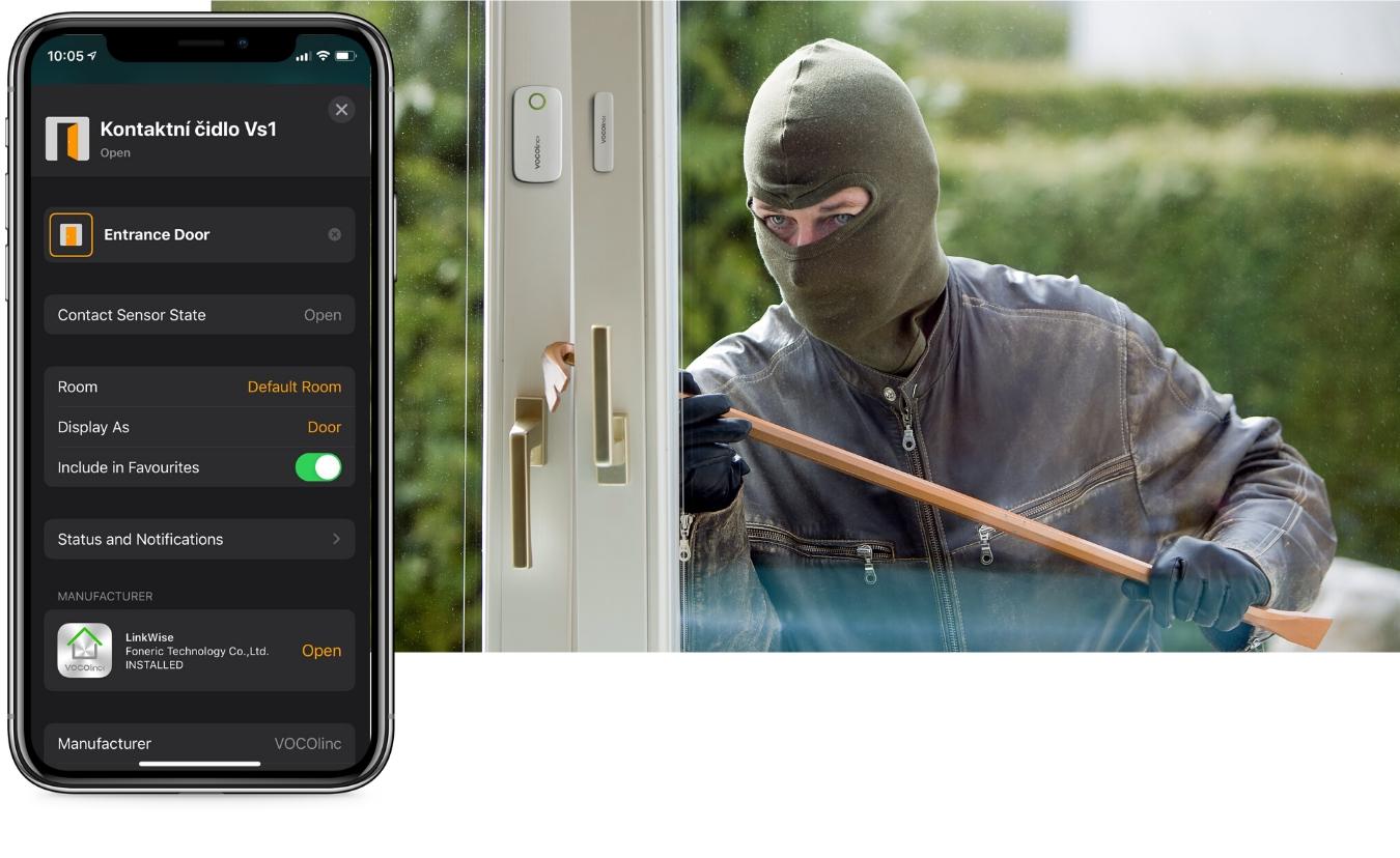 O tom, co se doma děje můžou víc říct také chytré homekitové senzory oken a dveří. Stačí je nalepit na rám sledovaného objektu. V tomto případě již potřebujete domácí centrum (iPad, Apple TV, nebo HomePod), se kterým senzor pomocí Bluetooth komunikuje. Následně odešle do vašeho telefonu oznámení o jakémkoli pohybu, nebo nevítaném hostovi. V případě, že vlastníte chytrou bezpečnostní kameru můžete ihned zkontrolovat co se doma děje.