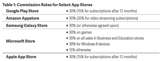 Ačkoliv si iniciativy jablečné společnosti v oblasti softwaru pochvalují a nezaznívají takřka žádné výrazné nářky, přesto existuje jedna věc, kterou lze Applu vyčítat. A tou je podíl z prodejů na App Storů, kdy do kapsy tohoto technologického giganta putuje 30 % z finální částky, což řadu tvůrců demotivuje a především nezávislá studia takto přichází o poměrně velkou část svého zisku. Apple se sice oproti podobným obviněním mnohokrát ohradil a tvrdil, že má k tomuto rozhodnutí důvod, ale ani to nestačilo a kromě komunity se do společnosti obuly i regulační orgány. Výrobce se proto rozhodl investovat do rozsáhlé studie společnosti Analysis Group, o níž se může při dalších nařčeních opřít. Studie totiž 30% podíl výrazně obhajuje a své tvrzení podkládá několika důležitými fakty.