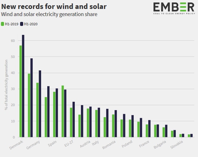 Evropská unie si stanovila cíl, že do roku 2050 chce být uhlíkově neutrální. Pokud vše půjde jako dosud, mohlo by se tak skutečně stát. Výroba elektřiny totiž na území EU totiž vůbec prvně pramení více z obnovitelných zdrojů. Jen za posledních 6 měsíců podíl energie z obnovitelných zdrojů stoupl o 11 %, za což může převážně hojné spouštění solárních a větrných elektráren v tomto období.