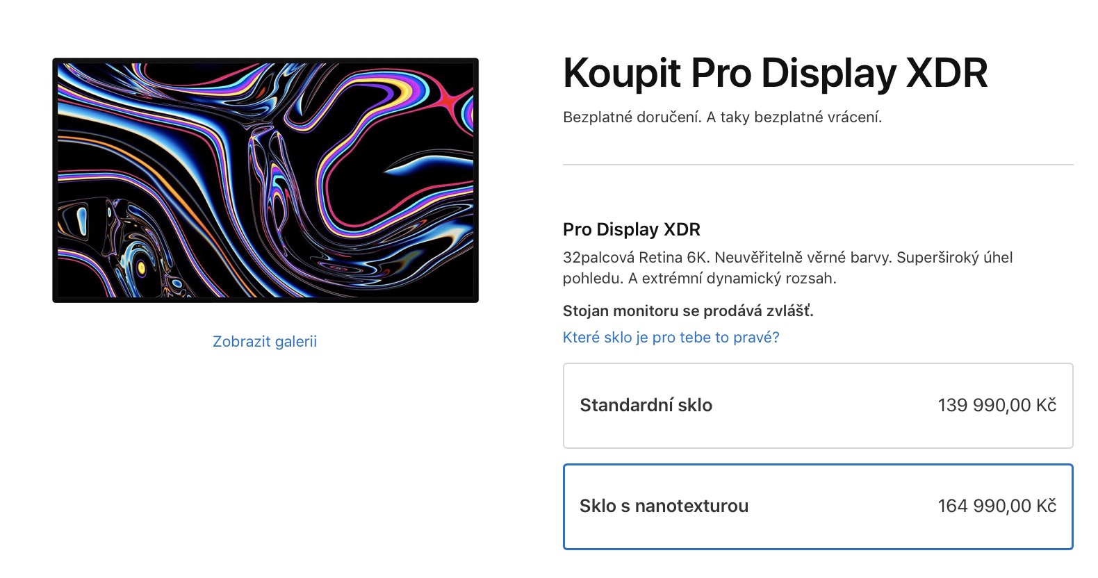 Konfigurátor na Online Storu Applu hovoří zcela jasně. Za sklo s nanotexturou u 27” iMacu si oproti standardnímu sklu připlatíte 15 000 Kč. Pokud pak sáhnete po stejné povrchové úpravě skla na Pro Display XDR, budete muset ze svého účtu vytáhnout rovných 25 000 Kč. Pravdou sice je, že displej má úhlopříčku 32”, avšak velikostní rozdíl 5” určitě nedělá cenový rozdíl 10 tisíc korun. V úvahu by teoreticky mohlo připadnout i to, že se jedná o mírně odlišnou úpravu, avšak ani to se nezdá tak úplně pravděpodobné. Popisky nanotextur u iMacu a Pro Display XDR jsou totiž na stránkách Applu zcela shodné. Co cenový rozdíl u nanotextur dělá je tedy svým způsobem záhadou, se kterou by však mohla souviset síla tuzemské měny, o které jsme psali v tomto článku. Určité vysvětlení by nám mohl v následujících dnech přinést i samotný Apple, jelikož cenový rozdíl naleznete nejen na tuzemském Online Storu, ale i na těch zahraničních – například v USA je cenový rozdíl celých 500 dolarů.