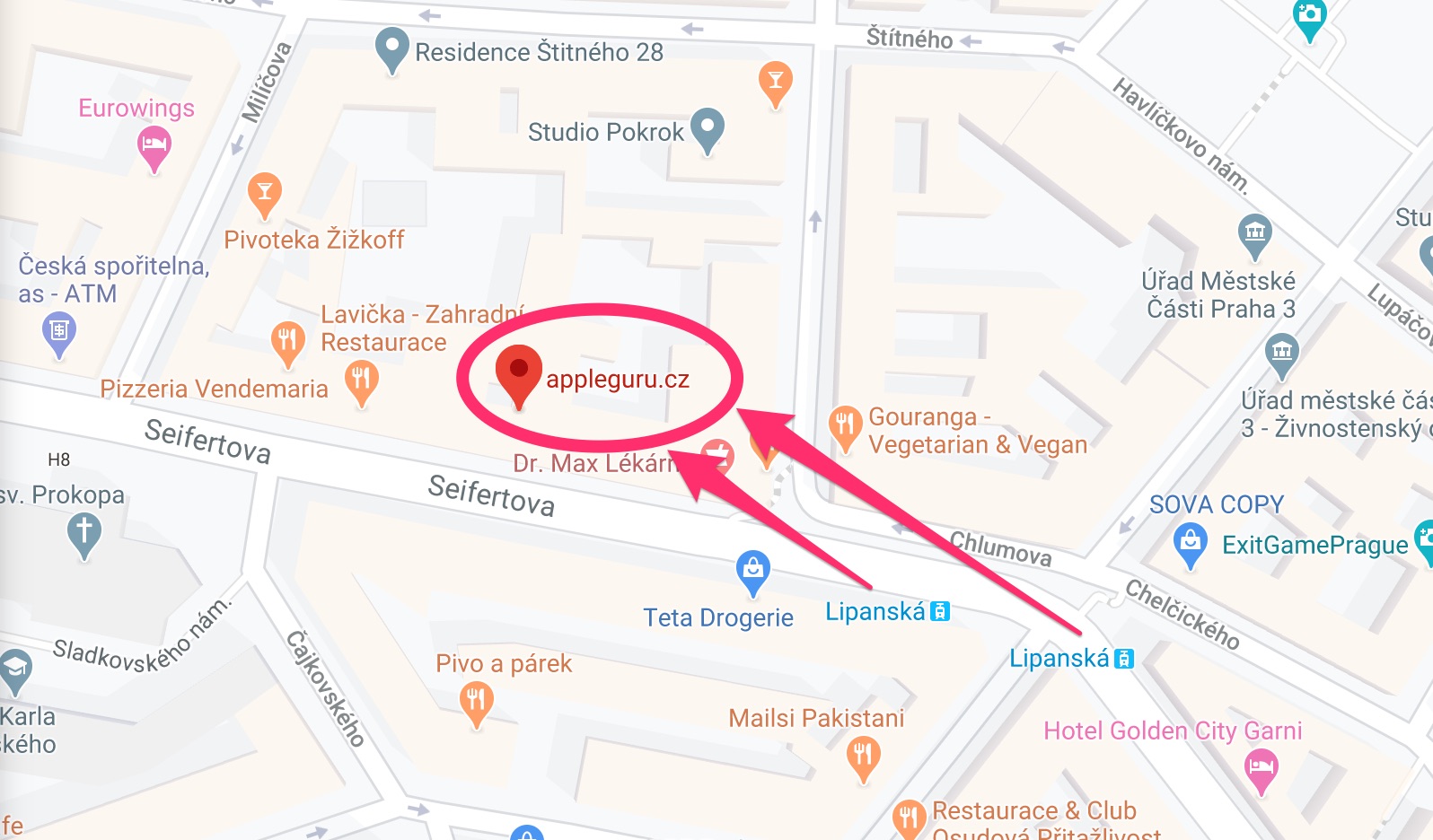 Servis appleguru.cz najdete v ulici Seifertova 83, Praha 3 – Žižkov, kousek od tramvajové zastávky Lipanská, kam jezdí linky 5, 9, 15 a 26. Rád vás uvítá ve všechny všední dny od 9 do 19 hodin. Nejste-li z Prahy, můžete svůj iPhone do servisu odeslat. Vyzvednutí pro objednávky pod 1 999 Kč stojí jen 119 Kč, doprava zpět je zdarma a svoz je odkudkoli z ČR. Toto platí nejen pro iPhony, ale i iPady a počítače Mac.