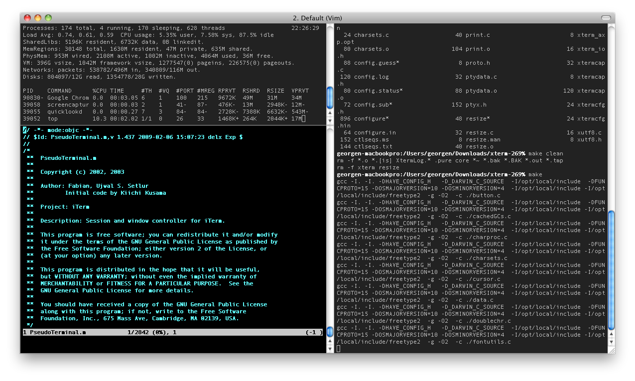 Mezi skvělé funkce patří například možnost pro otevření vícero oken terminálu, nechybí možnost pro využití různých zkratek (například pro rychlé skrytí terminálu), kromě toho můžete jednoduše ve všech zobrazených datech v okně vyhledávat. Vůbec nejlepší funkcí je poté automatické našeptávání – to funguje tak, že začnete psát nějaký příkaz a postupně se vám níže v menu začnou objevovat takové části příkazu, které korespondují s tím, co jste zrovna napsali. V nativním Terminálu poté nemůžete ani jednoduše kopírovat, zatímco v iTerm 2 samozřejmě ano. Zobrazit si můžete také historii provedených a vložených příkazů, nechybí také možnost pro rozšířenou uživatelskou konfiguraci, pomocí které si můžete iTerm 2 nastavit tak, aby vám stoprocentně vyhovoval. Tohle je jen výčet některých skvělých funkcí, v realitě jich iTerm 2 samozřejmě nabízí o mnoho více.