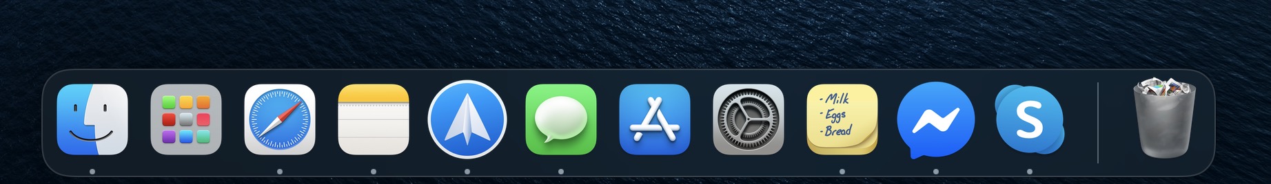 Jedna ze změn, kterých si všimnete prakticky ihned po spuštění operačního systému macOS 11 Big Sur, je redesignovaný dock. Ten je nově oproti tomu starému umístěn o něco výše a stejně jako horní lišta je průhlednější, takže v jeho pozadí můžete sledovat například tapetu anebo okna, která máte za ním spuštěná. Mimo jiné má dock samozřejmě jiný tvar – i zde si Apple vzal inspiraci z iPadOS, kde je styl docku velmi podobný. Nevšimnout si nelze ani nových ikon systémových aplikací. Bohužel lze nyní jasně poznat, které aplikace v docku patří mezi ty systémové, a které patří vývojářům třetí strany. Zatímco v minulých verzích byly ikony kulaté, tak nově jsou tvarovány do oblého čtverce. Většina aplikací má tedy ještě starý, kulatější vzhled, což se však v rámci aktualizací samozřejmě doupraví.