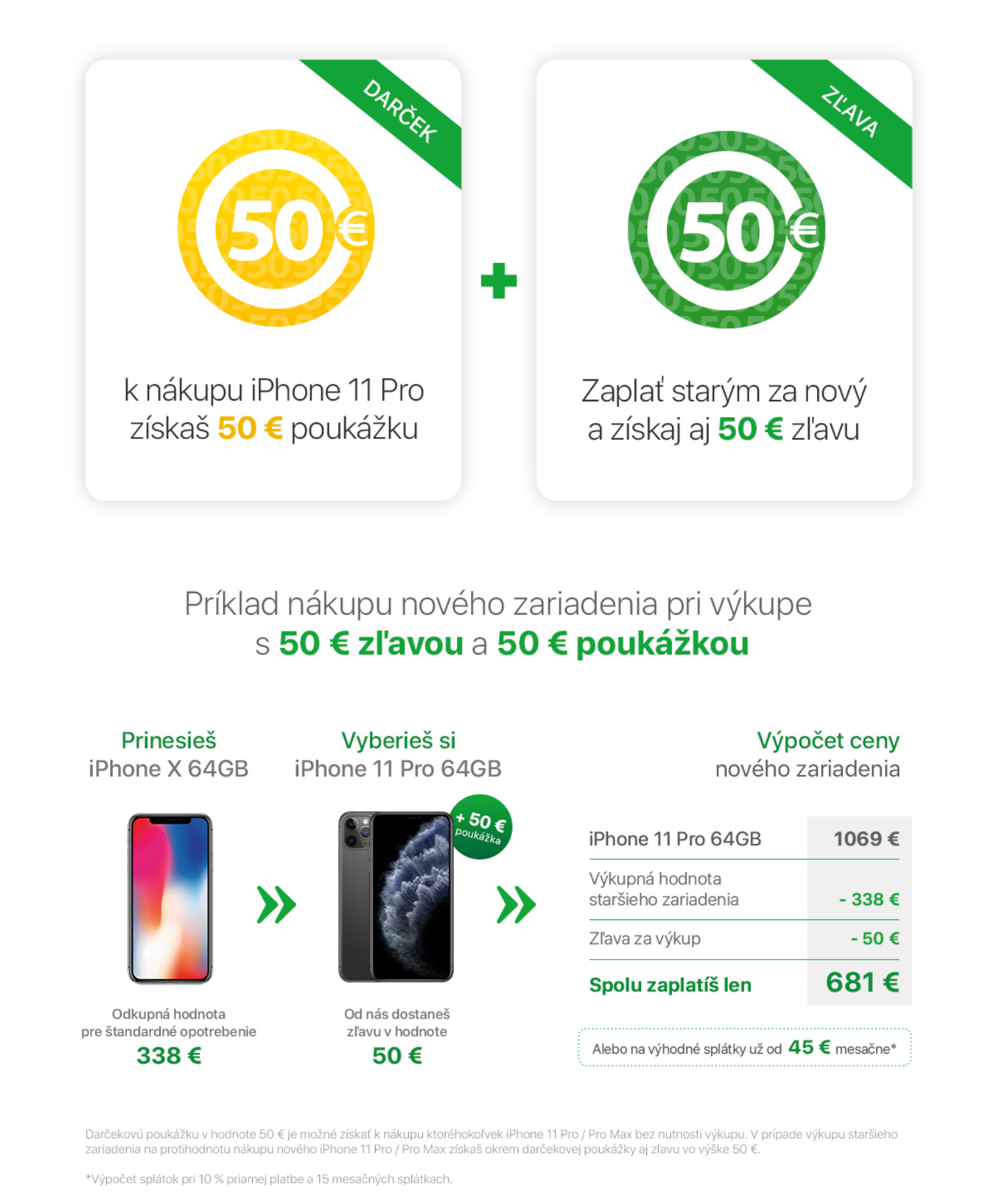 Pokukujete po nejlepším iPhonu v současné nabídce Applu – tedy po modelu 11 Pro či 11 Pro Max? Pak vězte, že k jeho nákupu dostanete na iStores.sk dárkový poukaz na další nákup v hodnotě 50 €, přičemž dalších 50 € dostanete od prodejce v případě, že mu na protiúčet odprodáte váš starý telefon. Díky tomu tak při nákupu de facto ušetříte 100 € a navrch dostanete peníze za vykoupený model, což je rozhodně super.