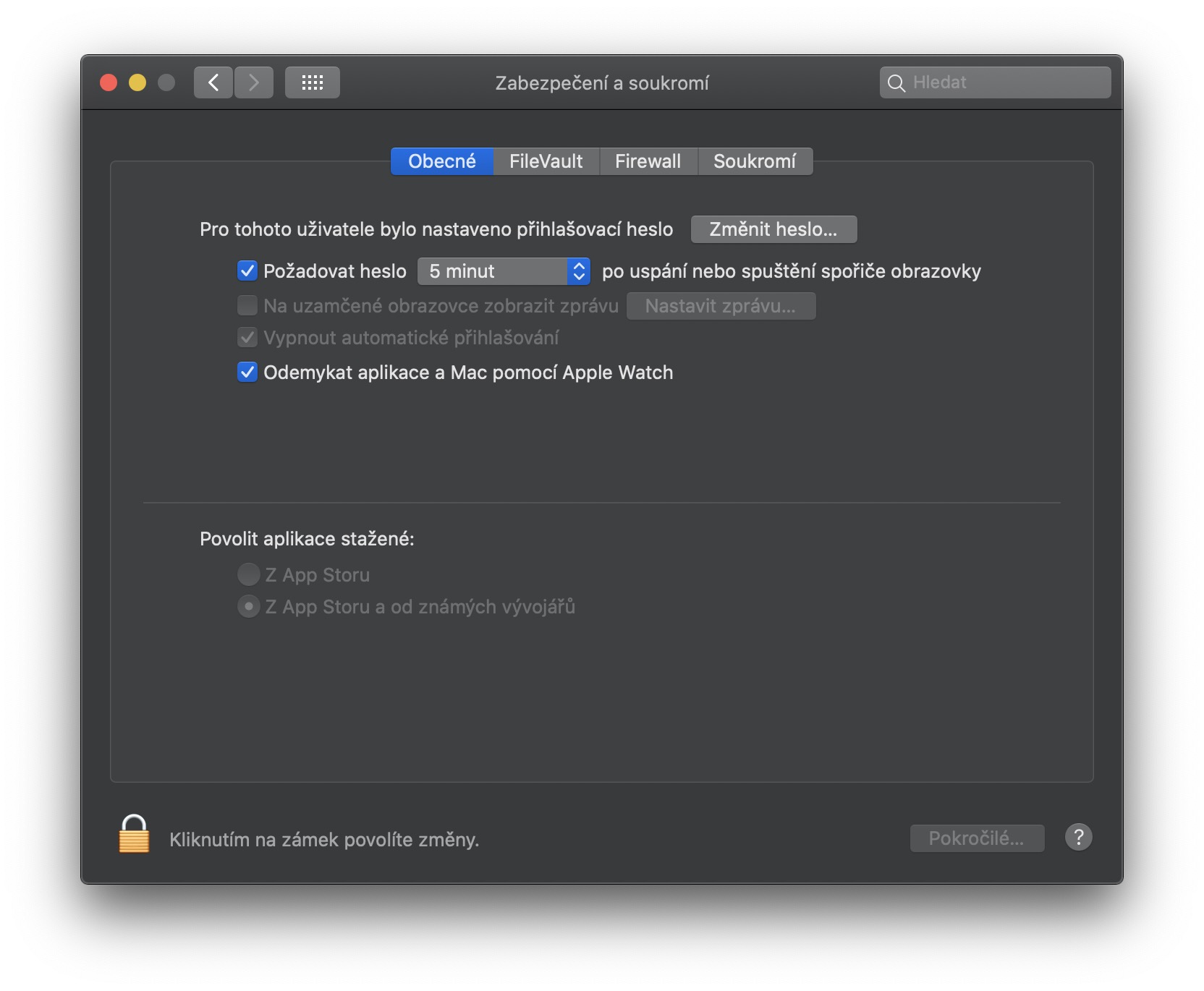 Odemčení Macu pomocí Apple Watch