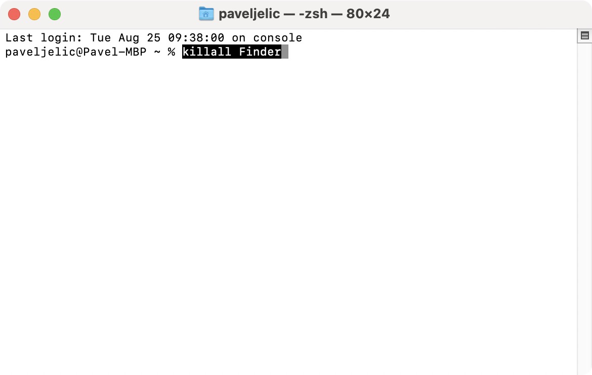 Po zkopírování příkazu se přesuňte zpět do okna Terminálu, příkaz zde vložte, a poté stiskněte Enter. Poté dojde k probliknutí obrazovky a Finder se tímto jednoduše restartuje.