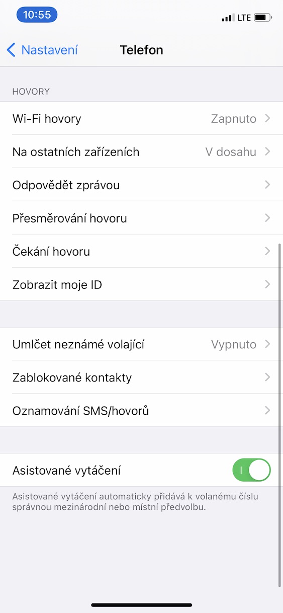 V případě, že chcete na vašem iPhonu nastavit, aby se k vytáčení automaticky přidala správná mezinárodní anebo místní předvolba, tak je nutné aktivovat zmíněnou funkci Asistované vytáčení. Její aktivaci provedete pomocí tohoto postupu: