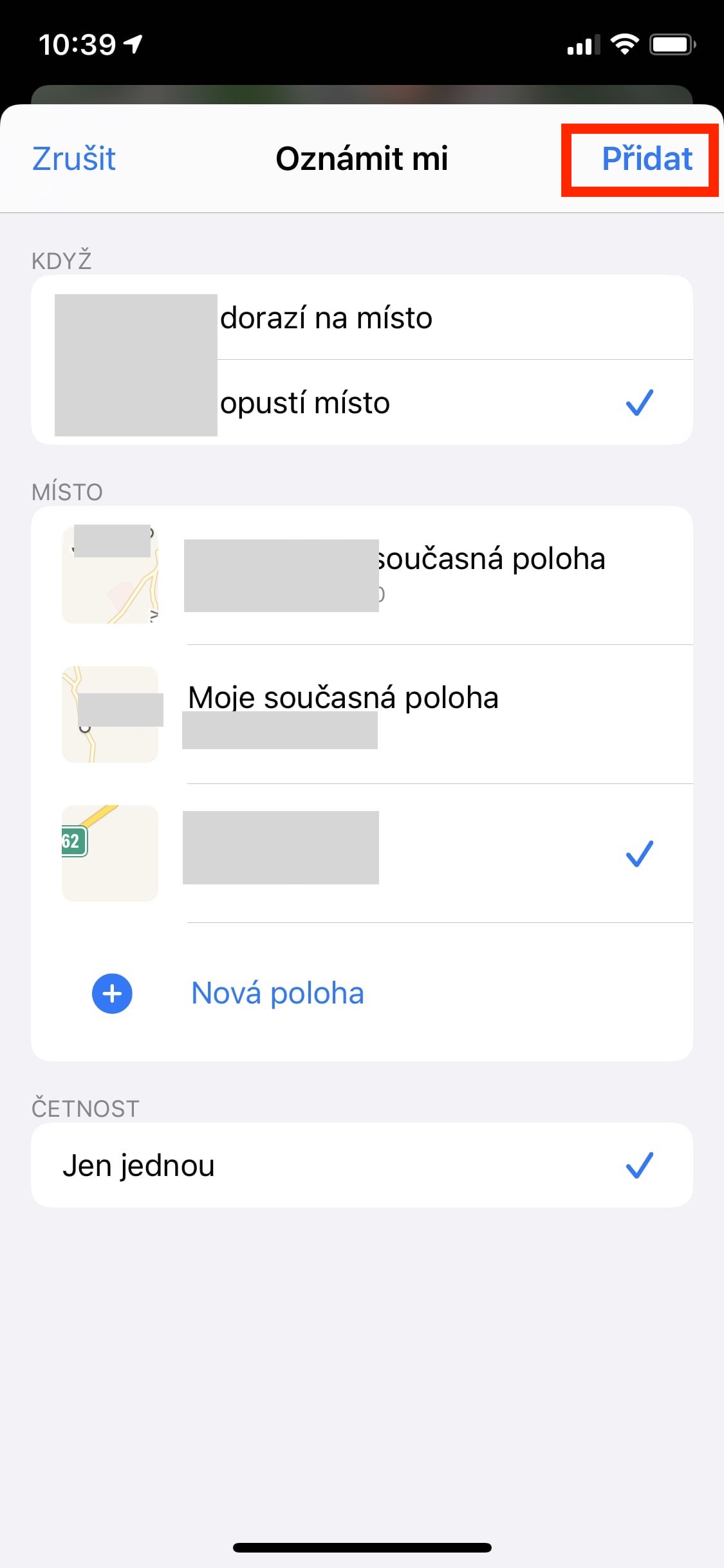 - Pak už jen vpravo nahoře stačí klepnout na Přidat, čímž se oznámení přidá.