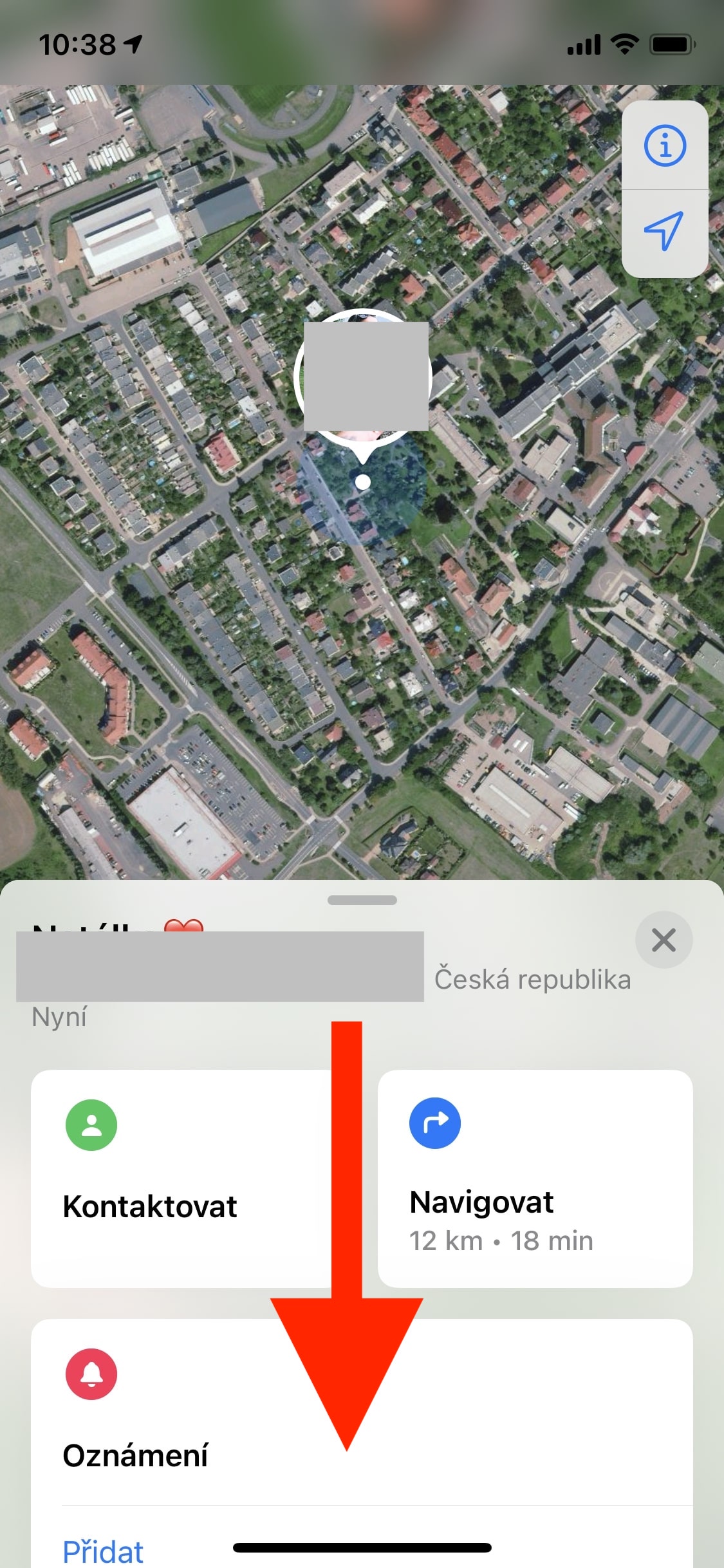 V případě, že si v rámci aplikace Najít chcete nastavit sledování určitého jedince tím způsobem, že se vám pošle automaticky upozornění poté, co opustí nějakou oblast, tak je prvně samozřejmě nutné, abyste měli možnost pro sledování uživatele aktivní. Jakmile budete mít k dispozici polohu uživatele, tak pokračujte následovně:
