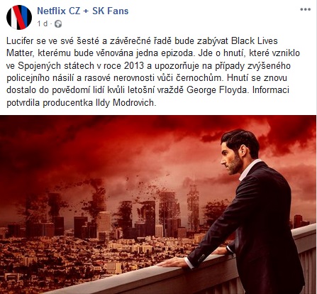 Hnutí Black Lives Matters vzniklo v roce 2013. Do širšího povědomí ve světě se ovšem dostalo až nyní po smrti George Floyda a je na místě říct, že toto téma ovlivňuje mnohé dění ve světě. A jak se zdá, tak už i seriály. Producentka seriálu Lucifer Ildy Modrovich totiž informovala, že se Black Lives Matters bude zabývat i jedna epizoda šesté řady seriálu Lucifer.