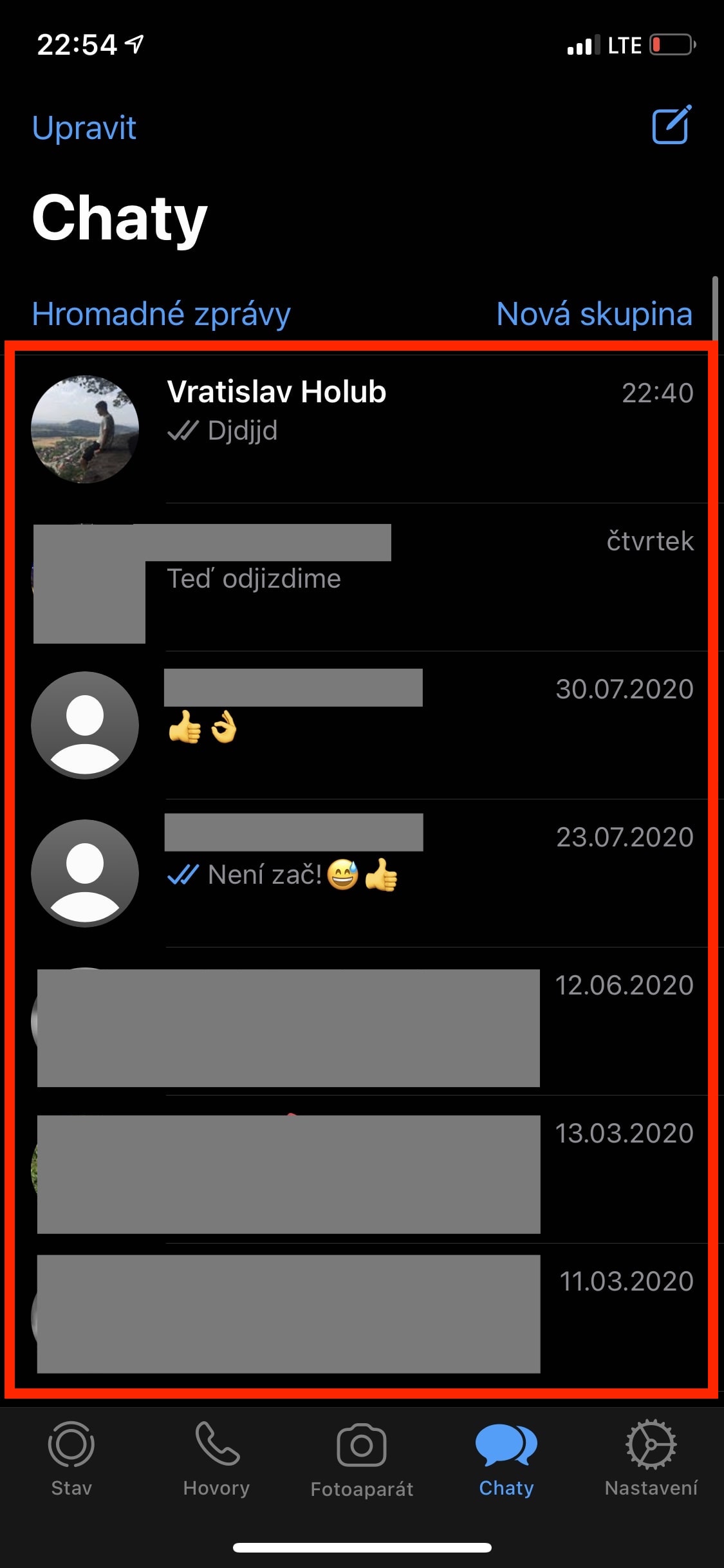 Čas od času se můžete ocitnout v situaci, kdy potřebujete z určitého chatu odstranit některá data – například veškeré fotografie, animace GIF, videa, hlasové zprávy, dokumenty, nálepky či samotné zprávy. Situací, kdy se tato možnost může hodit, může nastat hned několik, například pokud s někým řešíte dárek pro určitou osobu a hrozí, že by mohlo dojít k prozrazení. Pokud tedy chcete určitá data z konkrétního chatu odstranit, tak se přesuňte do aplikace WhatsApp, a poté ve spodním menu klepněte na kolonku Nastavení. Zde poté rozklikněte kolonku Využití dat a úložiště, a poté se ve spodní části obrazovky přesuňte do sekce Využití úložiště. Nyní si vyberte konkrétní kontakt, u kterého chcete data vymazat, a poté na něj klepněte. Ve spodní části obrazovky poté klepněte na Spravovat…, a poté zaškrtněte data, která chcete smazat. Po označení stačí klepnout dole na tlačítko Vymazat a akci potvrdit.