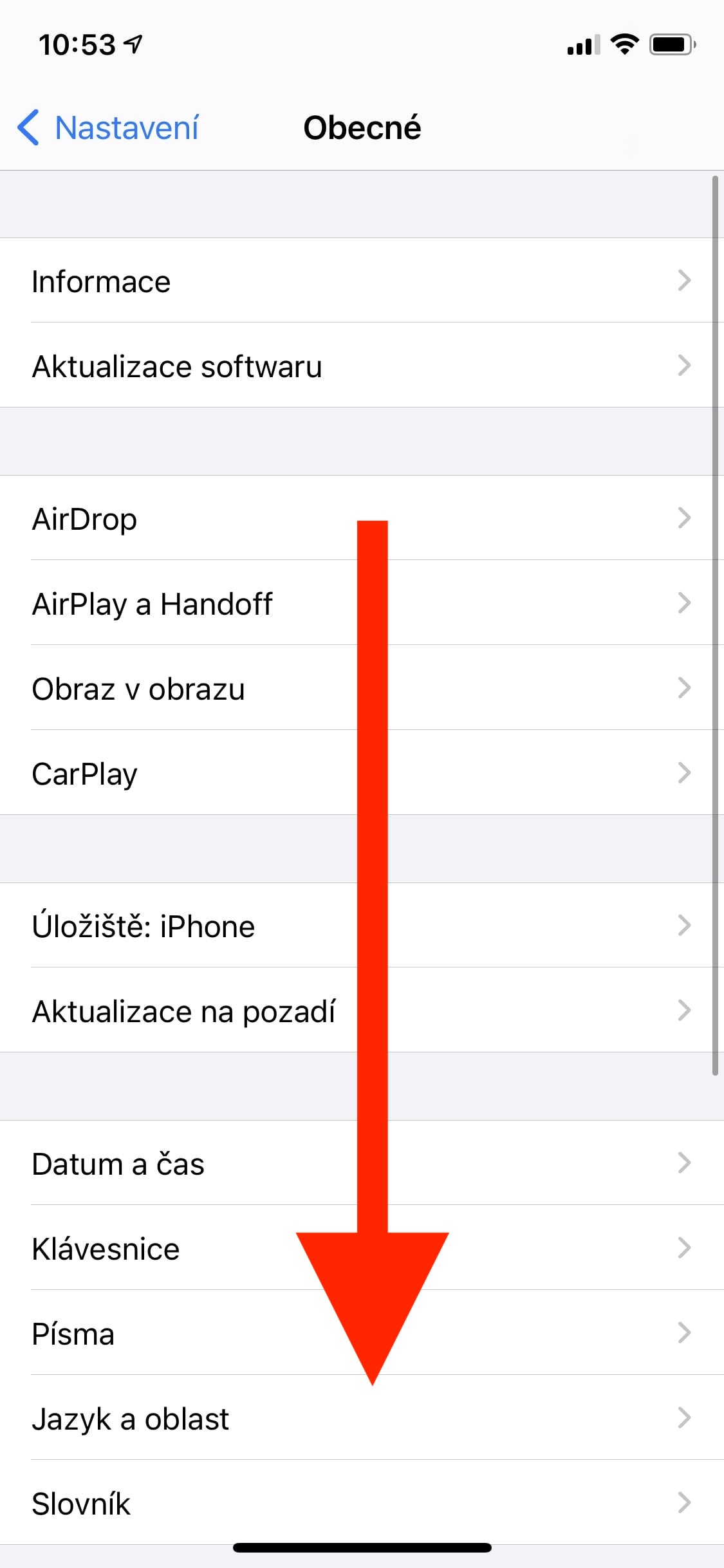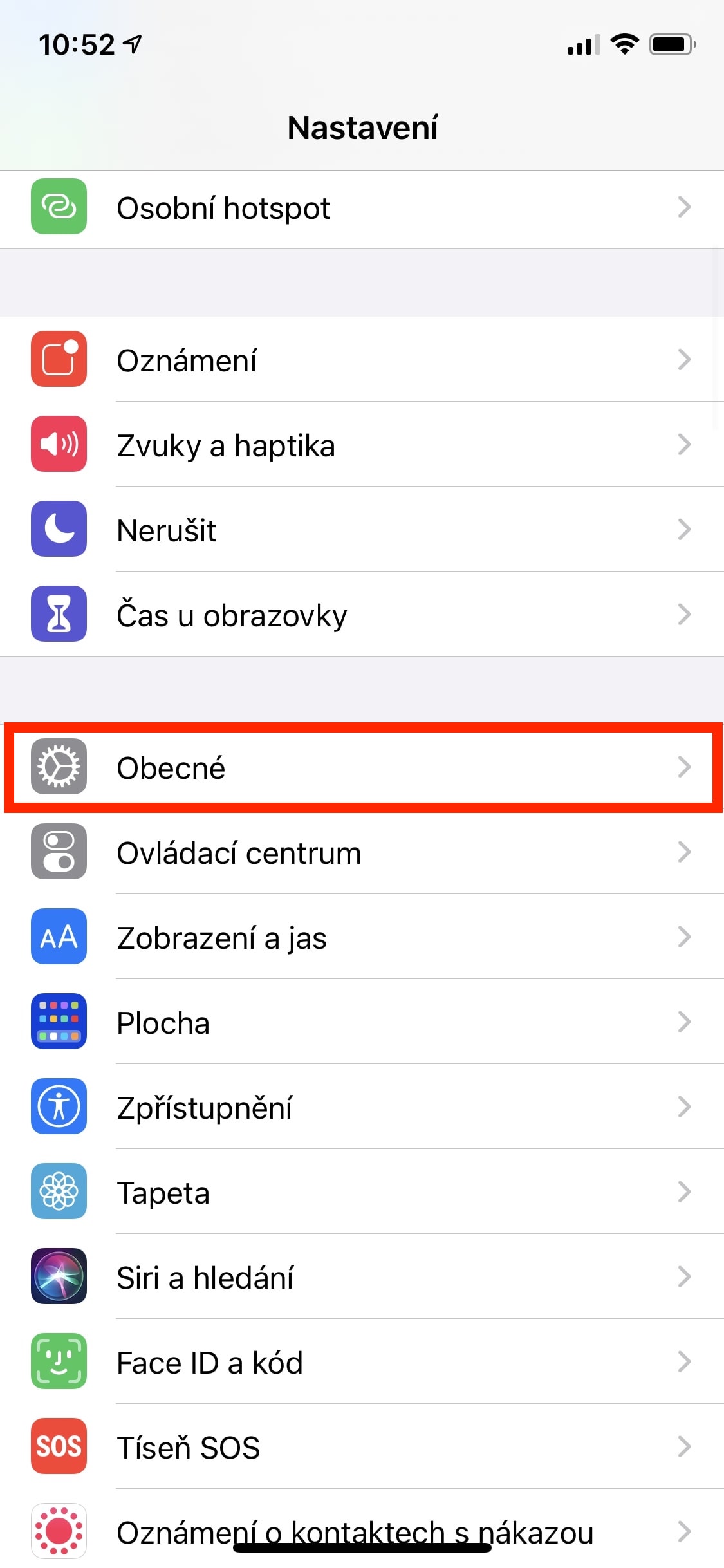 • Zde poté lokalizujte kolonku s názvem Obecné a klepněte na ni.