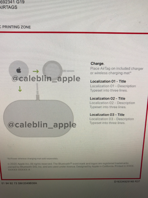 Snímek zkušebního manuálu k AirTagům zveřejnil leaker na svém twitterovém účtu o víkendu s tím, že se mu je podařilo získat od dodavatelů zajišťujících Applu tisk brožur k balení. Jak můžete na snímku pod tímto odstavcem vidět, manuál není zatím z hlediska textu téměř vyplněn, avšak díky nákresům není problém pochopit, jak bude nabíjení produktu, kterému je právě zachycená stránka věnována, probíhat. Využívat k tomu budeme moci jak bezdrátové nabíječky v čele s AirPower, tak zřejmě i magnetický nabíjecí kabel, který Apple dodává k Apple Watch. Ten tak najde konečně i další využití, což je rozhodně dobrá zpráva. Manuál tedy jinými slovy vyvrací spekulace o výměnných knoflíkových bateriích, které měly být podle některých leakerů do AirTagů nasazeny a pravděpodobně jimi i některé prototypy disponovaly.