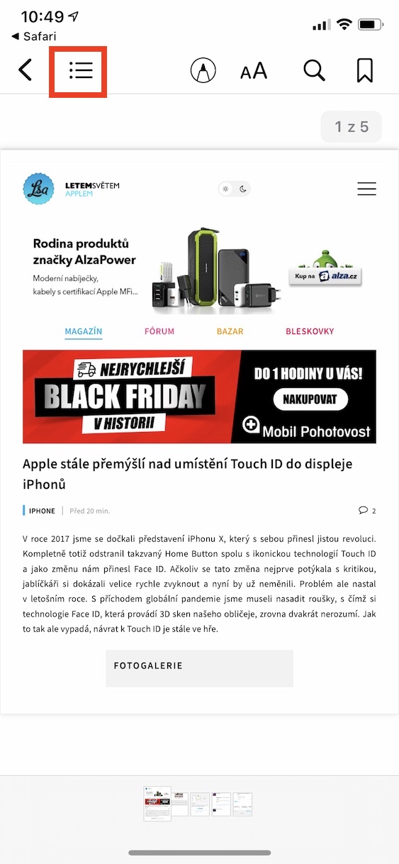 • Prvně je samozřejmě nutné, abyste se v Safari přesunuli na konkrétní webovou stránku, kterou chcete uložit.