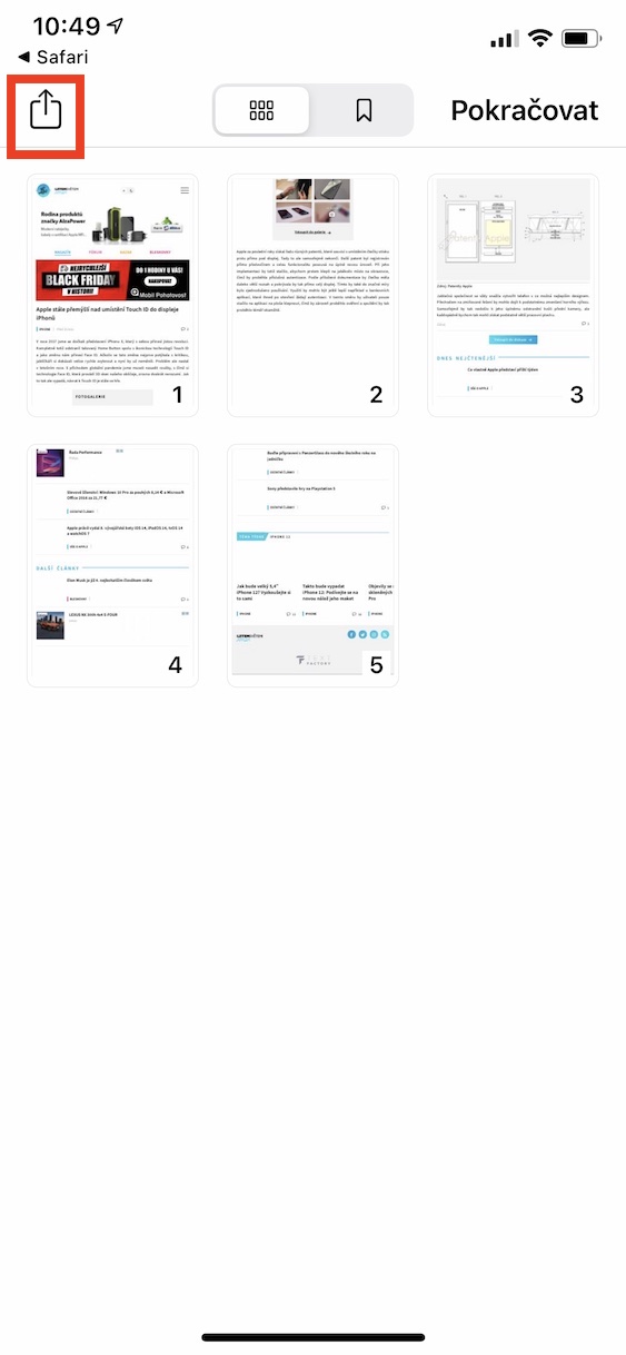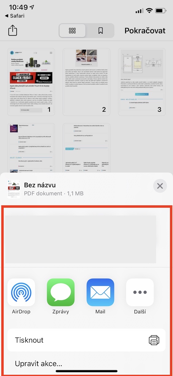 Jak na iPhone z webové stránky v Safari vytvořit PDF dokument